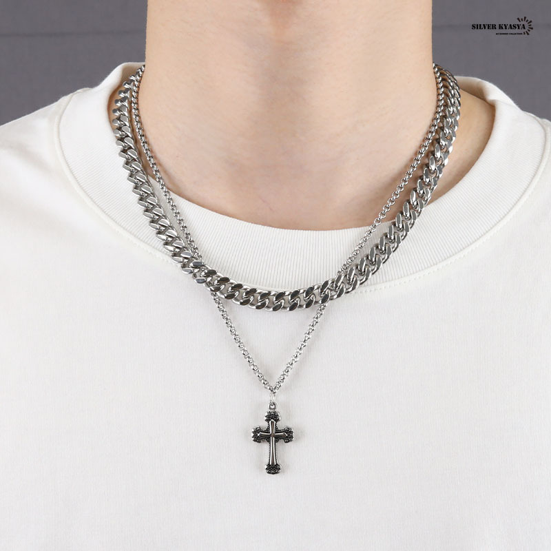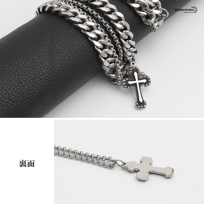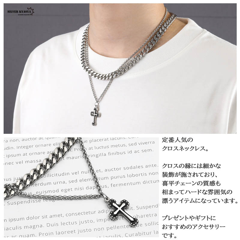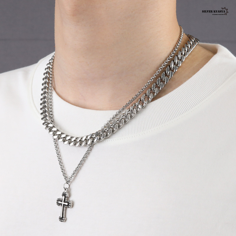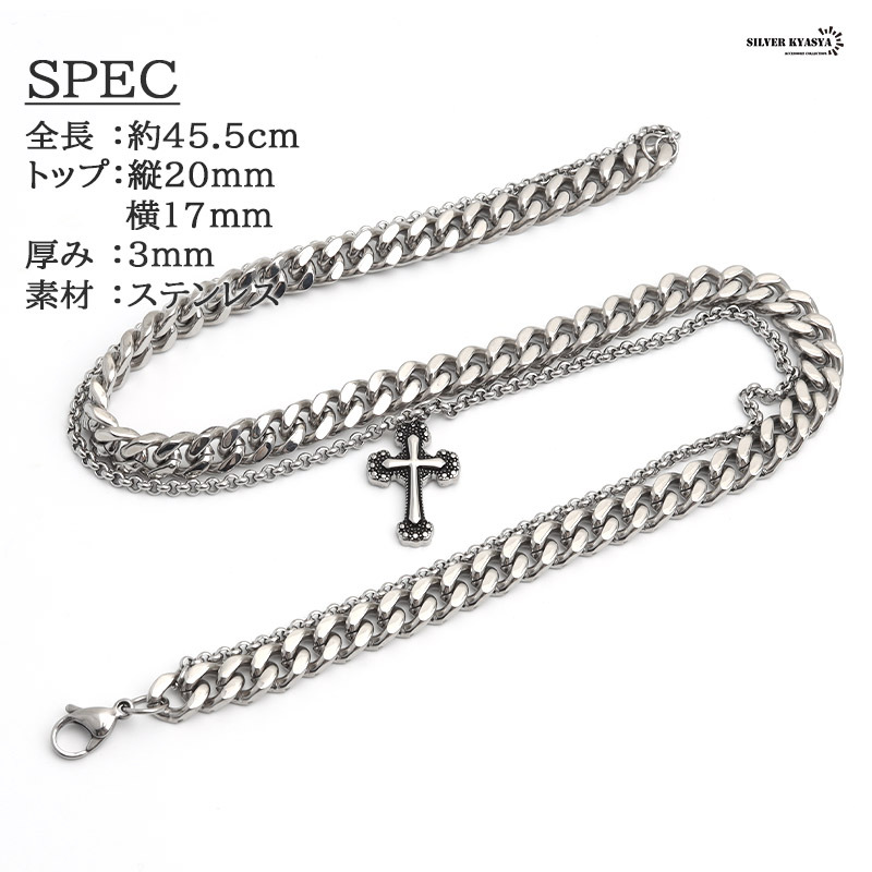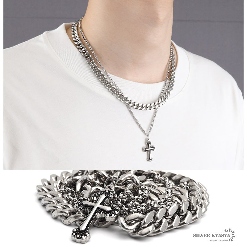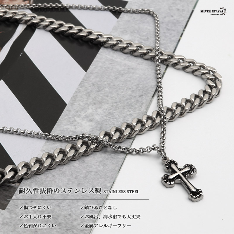 ネックレス クロス 十字架 喜平チェーン あずきチェーン ストリート 銀色 金属 ステンレス アレルギーフリー