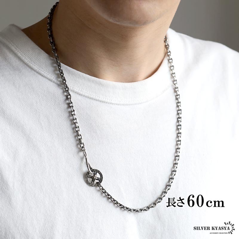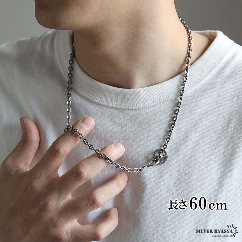 シルバー925 フェザーネックレスチェーン 幅5mm 60cm フック メディスンホイール あずきチェーン 金属アレルギー対応