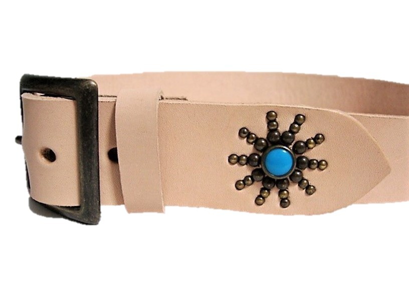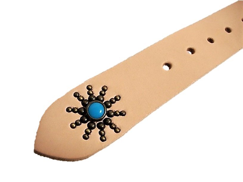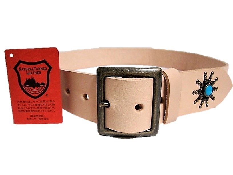 栃木レザー エンドオンリースタッズベルト ナチュラル(ターコイズスポッツ) ヴィンテージタイプ 一枚革