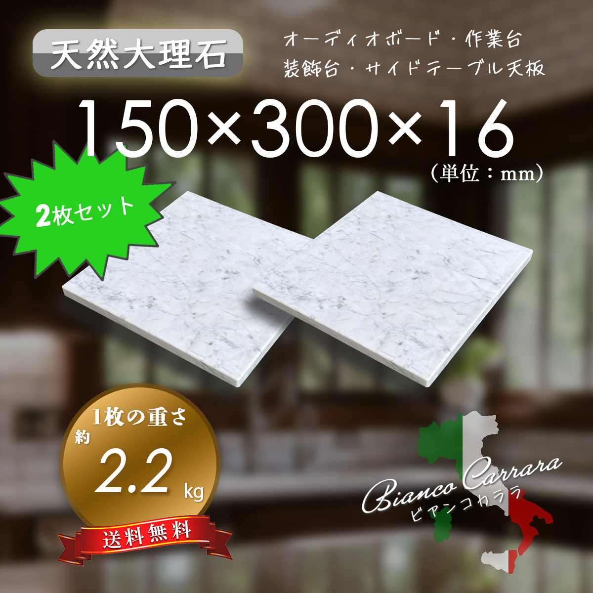 【超高級天然大理石】 オーディオボード 白系 ビアンコカララ 150mm×300mm×16mm 5面磨き 2枚セット 新品 即決 送料無料 | ||||