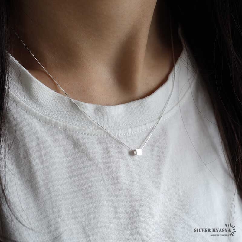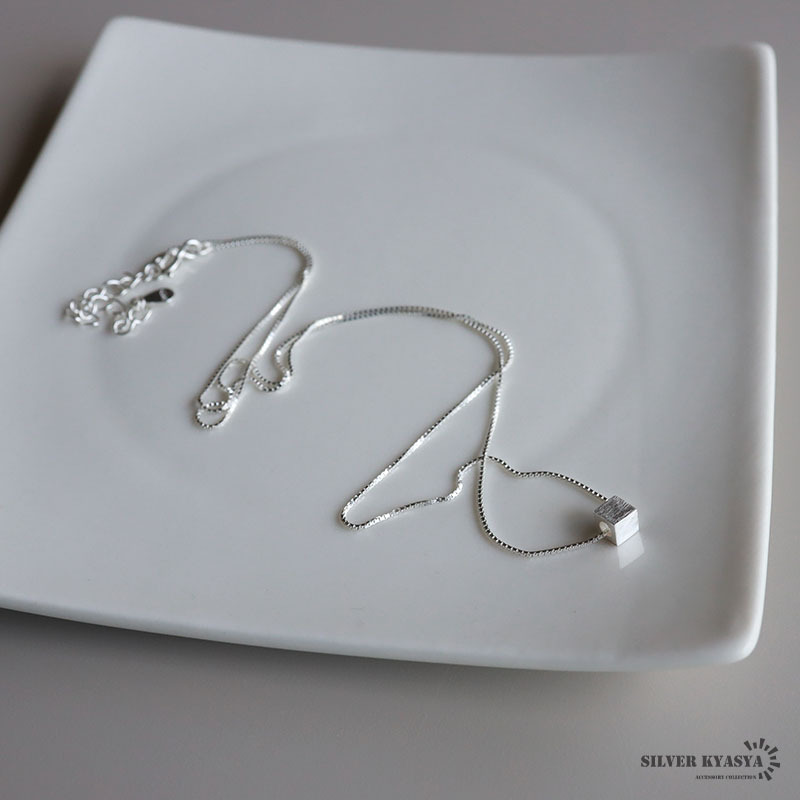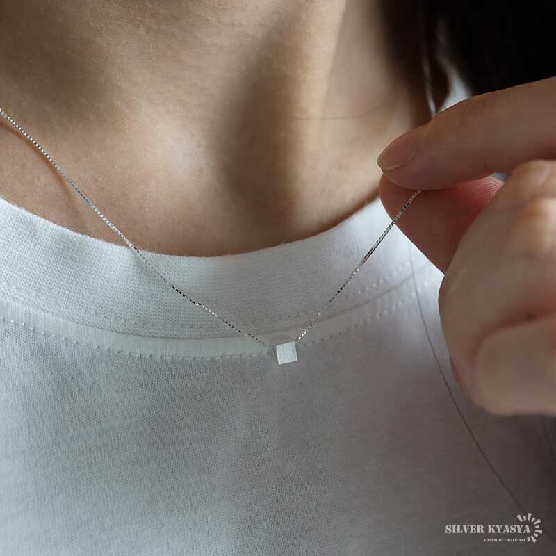 シルバー925 角砂糖ネックレス ミニマムネックレス シルバー シンプル 華奢 スクエア ベネチアンチェーン 金属アレルギー対応