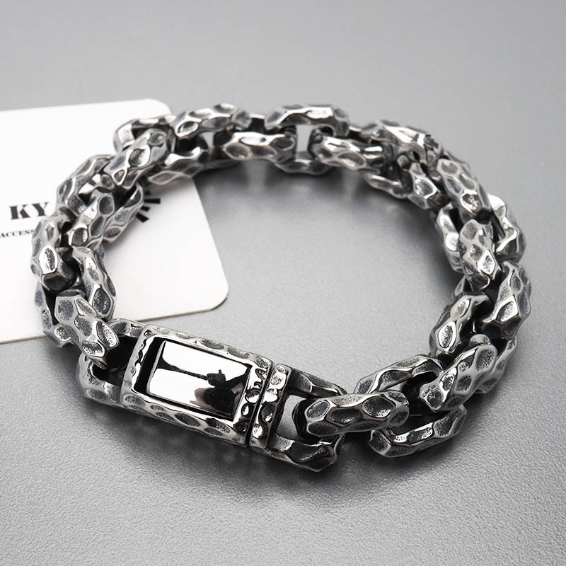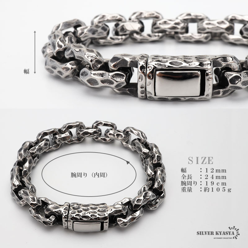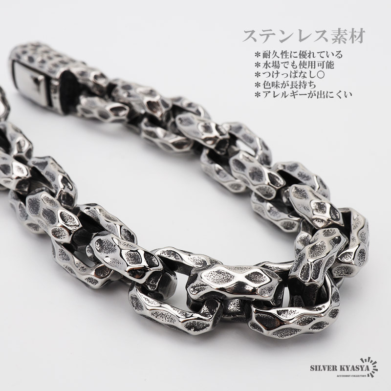 重厚 槌目ブレスレット メンズ チェーンブレスレット アンカーチェーン シンプルブレスレット 槌目 岩石 岩 ステンレス316L
