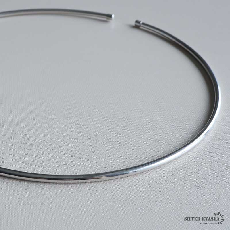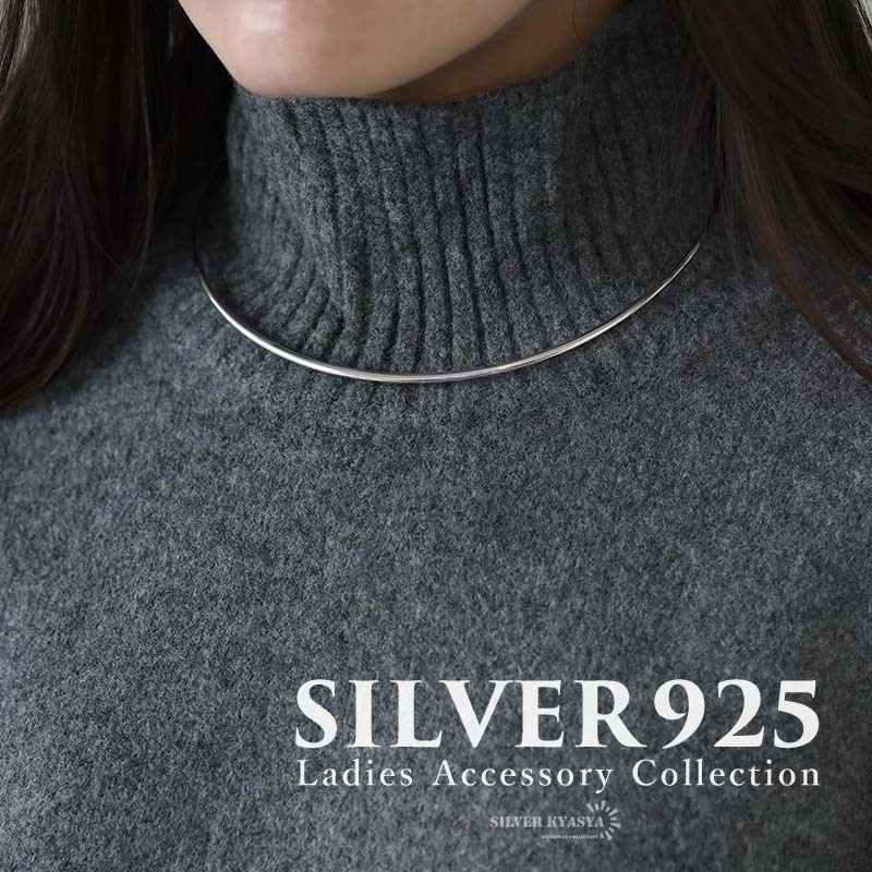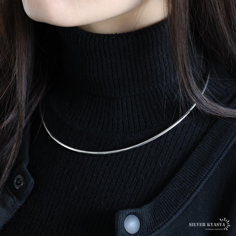 太めチョーカー メタルチョーカー シルバー925 シルバー ネックレス choker 中空仕様 つけやすい 先端処理