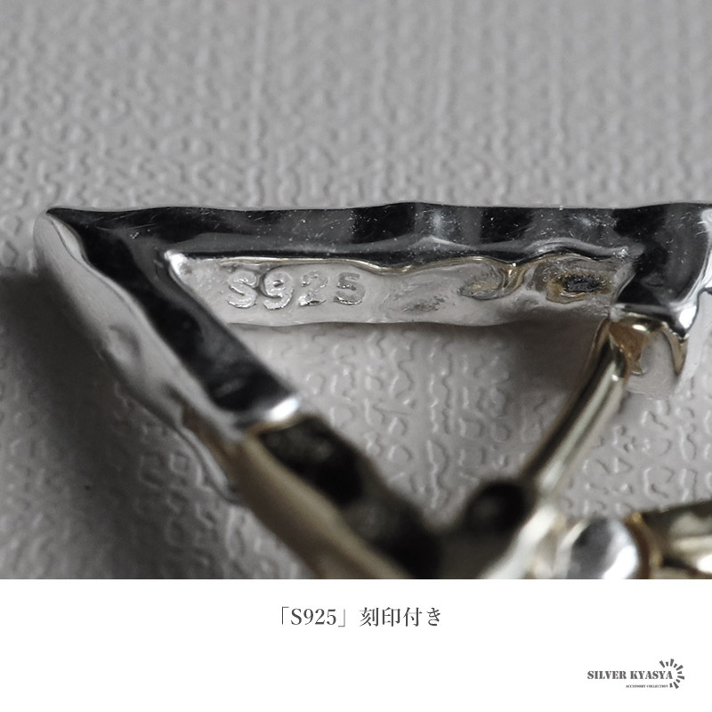 シルバー925は、銀含有率(純度)92.5%を示し、一般的に純銀として扱われています。サビや劣化等がほとんどなく金属アレルギーも出にくいとされており、アクセサリーとして重宝される金属です。