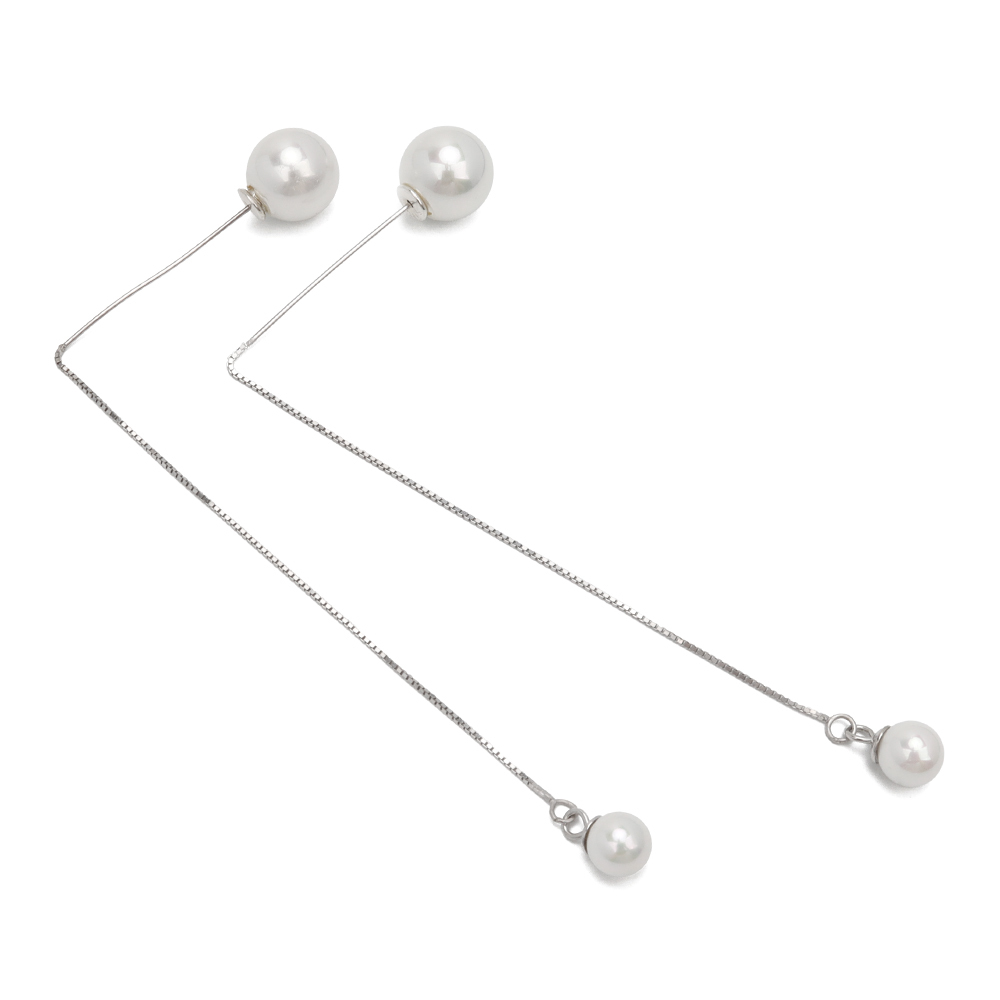 ■大小の艶めくパールと揺れ感がお洒落なロングチェーンピアス