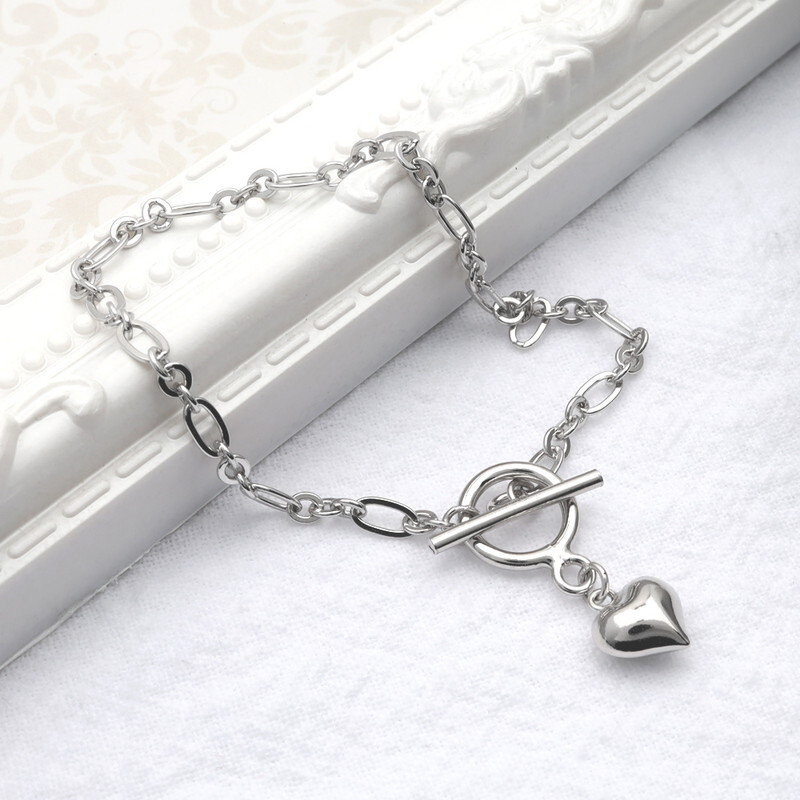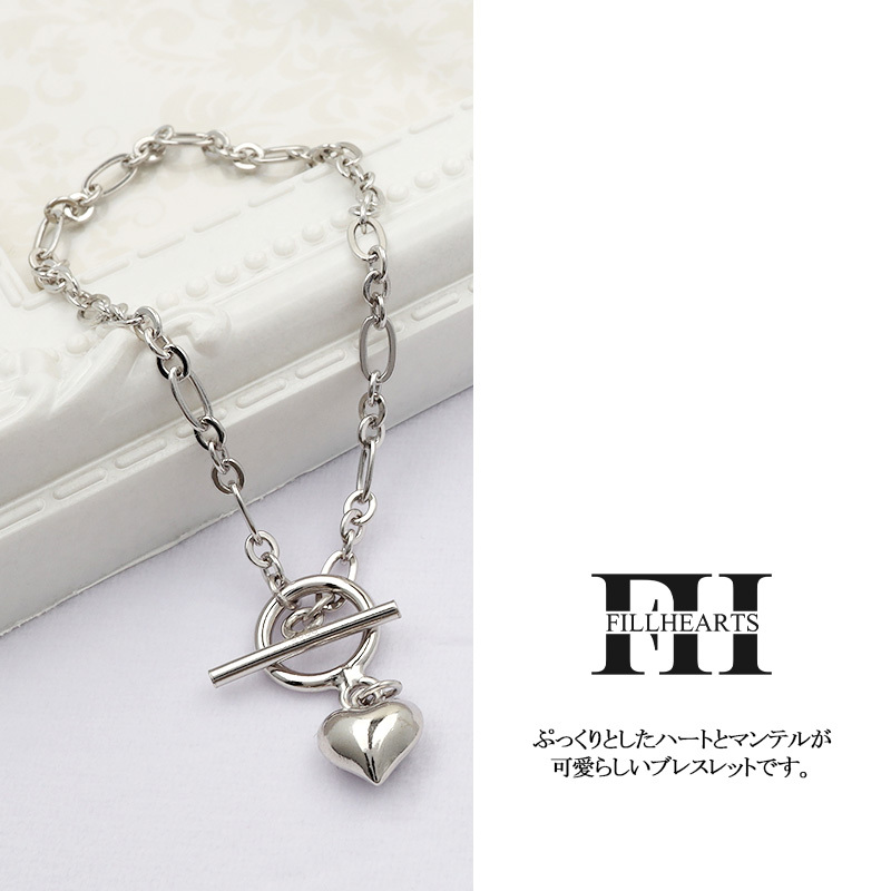 ぷっくりとしたハートのチャームとマンテルを組み合わせたブレスレットです。