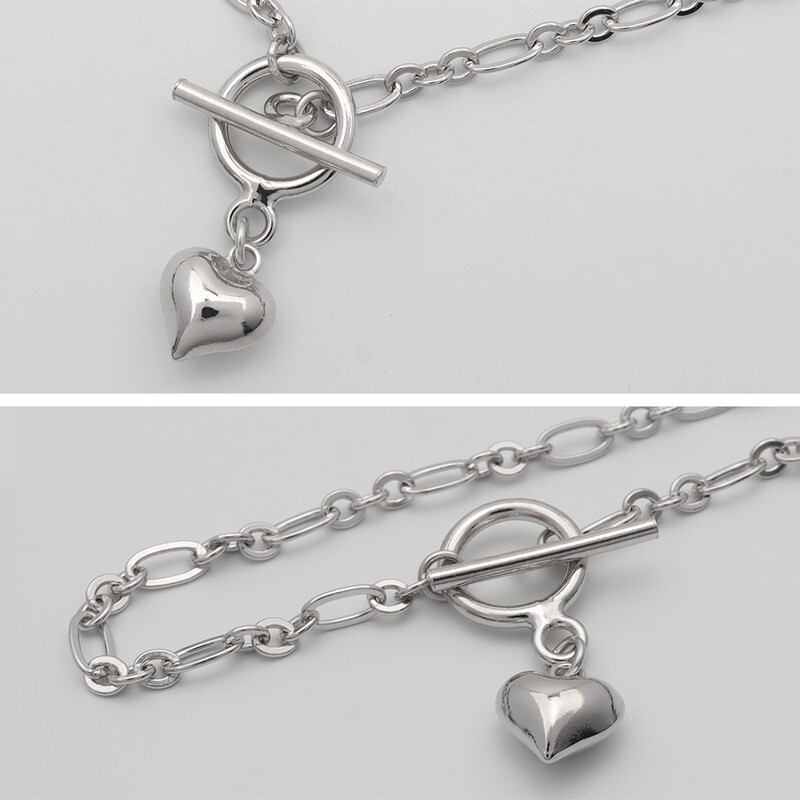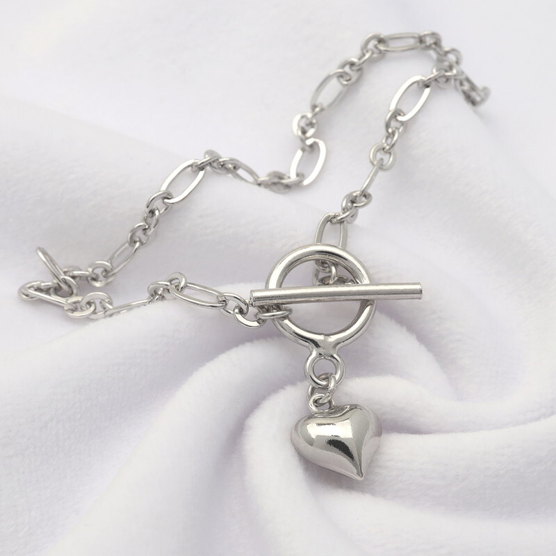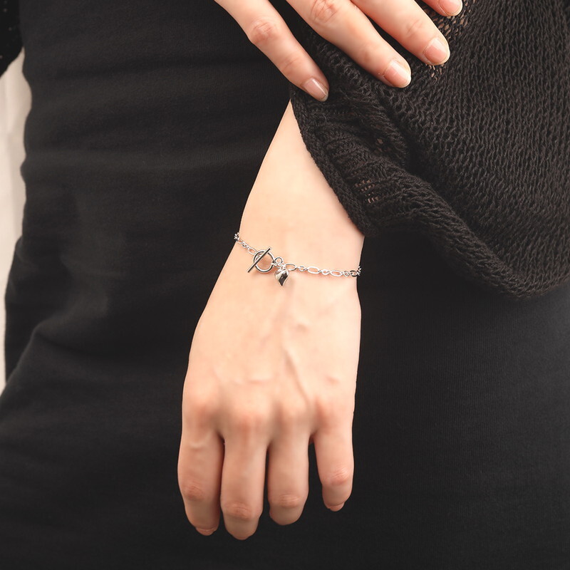 なめらかで肌なじみの良いシルバーと、さり気ないハートモチーフが上品な雰囲気を演出します。