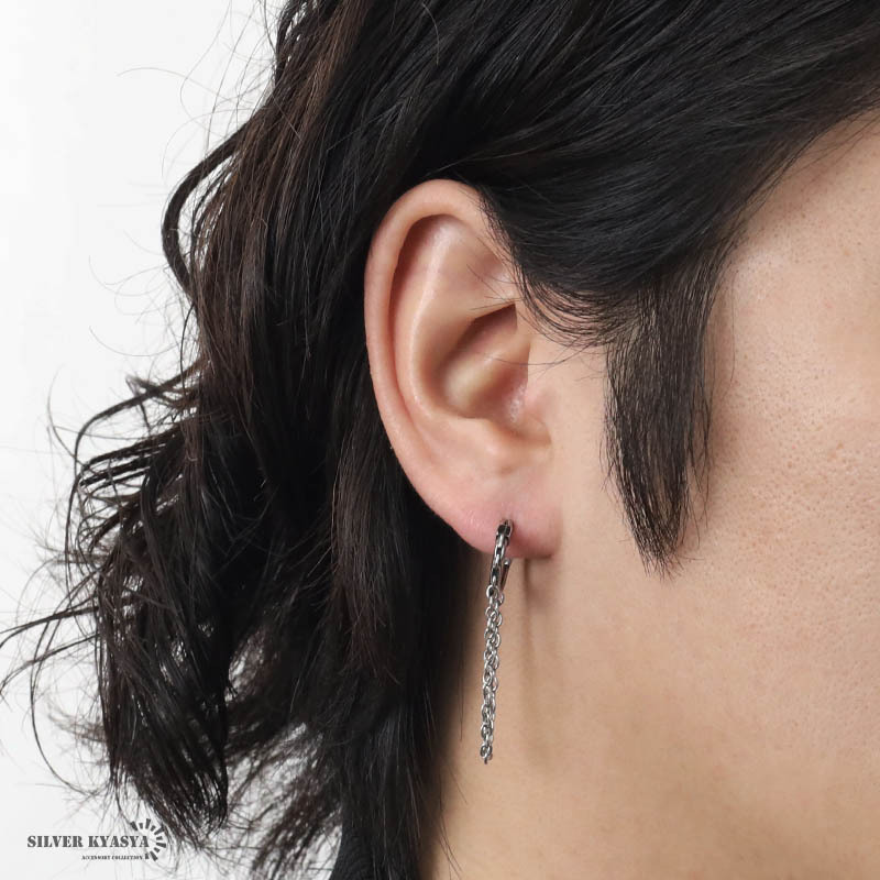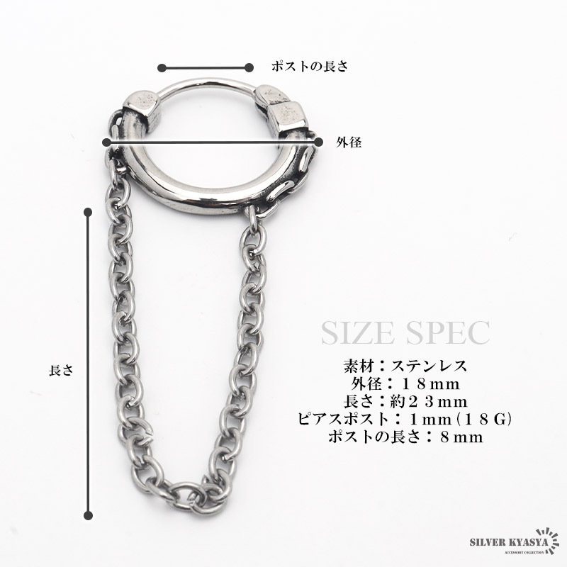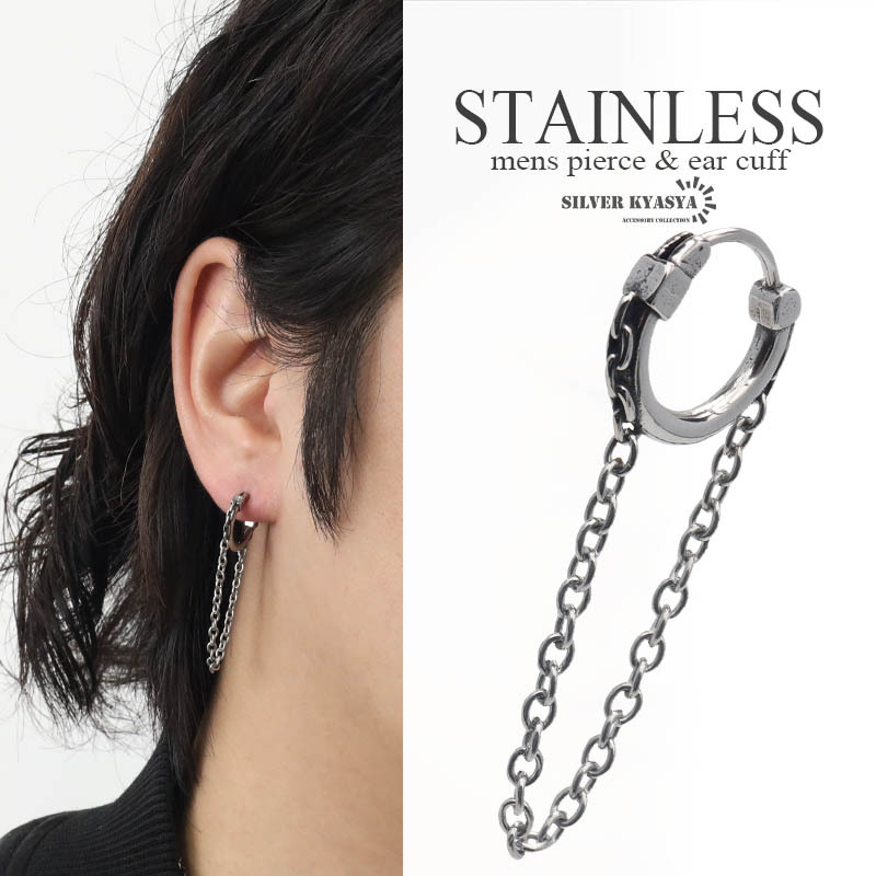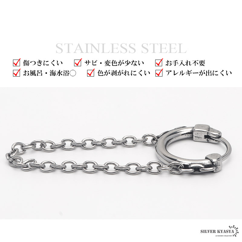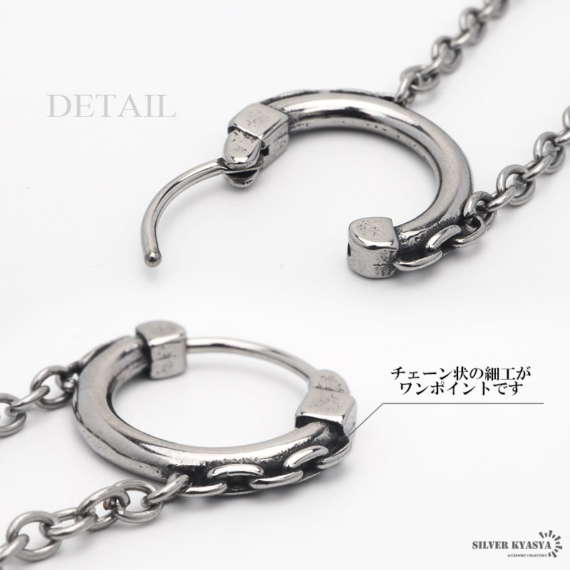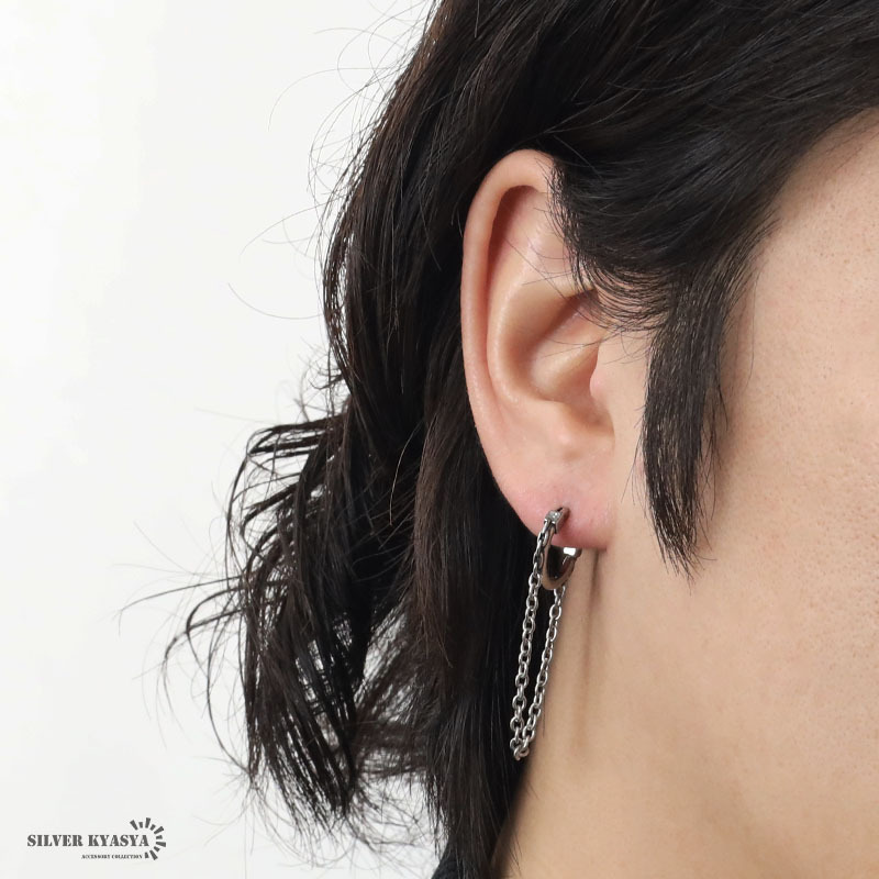 ステンレス チェーン フープピアス メンズ ドロップ 鎖 ピアス イヤリング 金属アレルギー対応 片耳用1点 18G