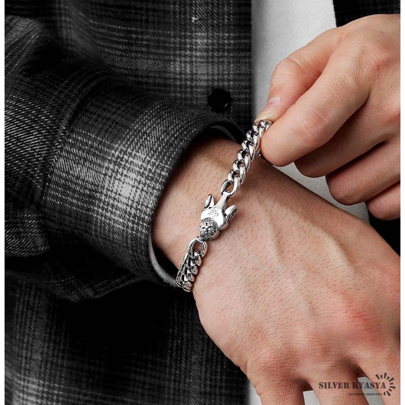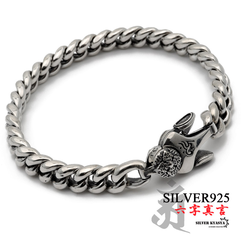 六字真言 ブレスレット メンズ シルバー925 喜平 チェーンブレスレット 銀 金剛杵 梵字 刻印 金属アレルギー 専用BOX付属