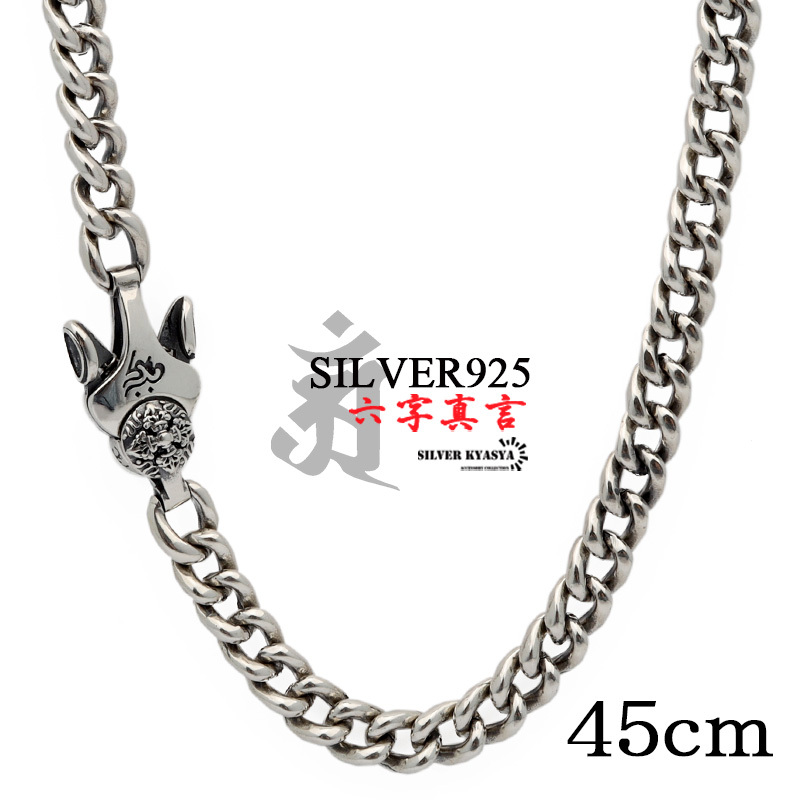 45cm 六字真言 ネックレス メンズ シルバー925 喜平チェーン チェーンネックレス 銀 金剛杵 梵字 刻印