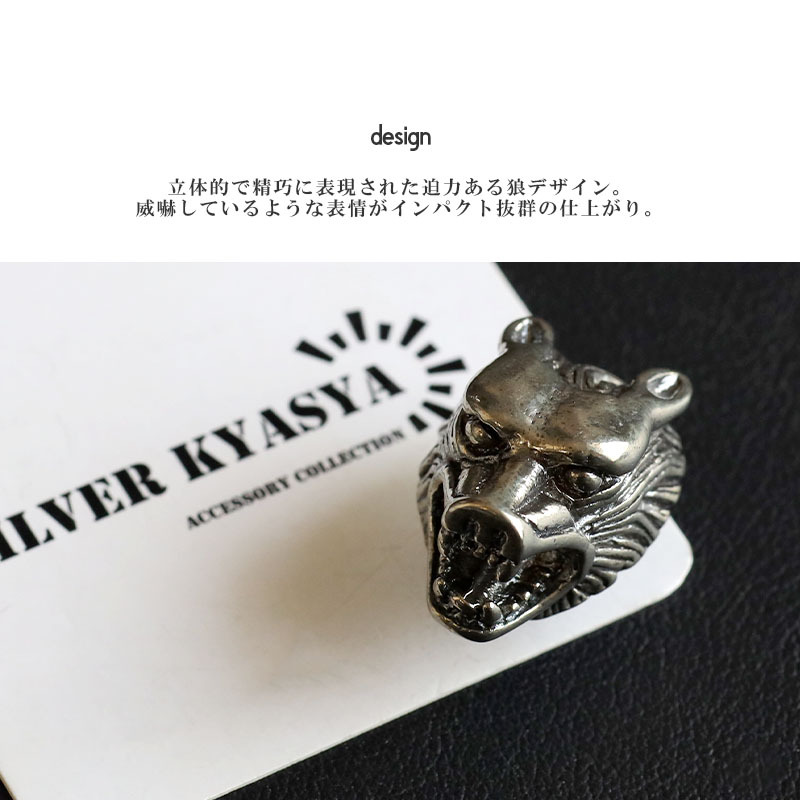 立体的で精巧に表現された迫力ある狼デザイン。威嚇しているような表情がインパクト抜群の仕上がり。