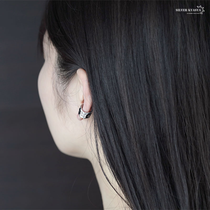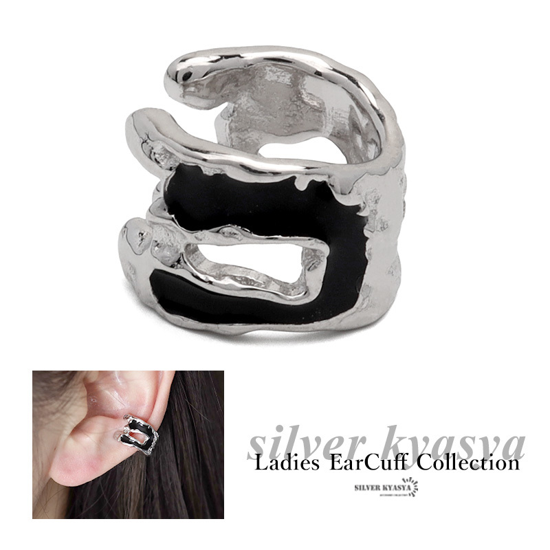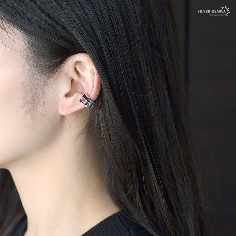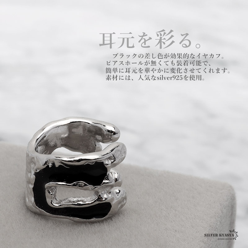 イヤーカフ 金属アレルギー シルバー925 変形 ゆがみ 透かし シルバー 銀 ブラック 黒 イヤーカフ イヤークリップ 片耳用