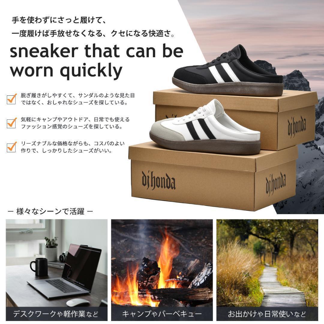 スニーカーのような見た目なのに、かかとがなく、さっと履ける。