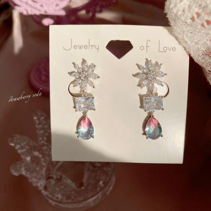 クリアビジューを使用した透明感のあるフラワーモチーフイヤリング.*・゜