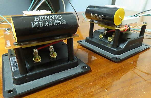 | ●目立つダメージ無く全体的に非常に綺麗な希少な個体です。 ●状態の良いシステムを厳選し、各部の清掃、エッジの張替え、ネットワークコンデンサ交換、吸音材の追加等などのフルメンテナンスを行い、末永くご愛用頂けるよう綺麗に仕上げてあります。 ●純正の22ufの電解コンデンサーは、高級素子であるBENNIC製の大型フィルムコンデンサーに変更してあります。 ![]() ●ボックス内部は、ウーファー背面の定在波による影響を考慮して凹凸の高級吸音材を追加しています。 ●加水分解を起こしたエッジはソフトゴムエッジで張替え、左右で音に差が無いか特性計測、合わせてネットワークの検査を行っています。 ![]() ●振動板、エッジ良好です。左右雑音無く綺麗な音楽を聞かせてくれます。 ●サランネットも穴やホツレ無く綺麗です。クリーニング済みです。 ●オーディオ銘機賞1999 スピーカーシステム部門賞を得たシステムです。 ●リアルウッド仕上げが施されたヴェッキオシリーズの本格派2wayスピーカーシステで、A820との違いはマルチメディア対応の防磁ユニットに進化しています。 ●現在、同じフルメンテナンスを行ったウレタンエッジ仕様も同時に出品中です。上記の特性を見て頂けると低域の出せる限界の周波数(最低共振周波数)24Hzから再生可能です。ゴムエッジにすることでピークを抑え聞きやすい透き通った音楽をお楽しみ頂けます。ウレタンエッジ仕様の方も特性を掲示していますので好みに合わせてご検討ください。 ●流通量が減った傷が少ない希少な個体です。状態の良いシステムをお探しの方は是非。 ●JBL A822Vecchio詳細スペック | |||