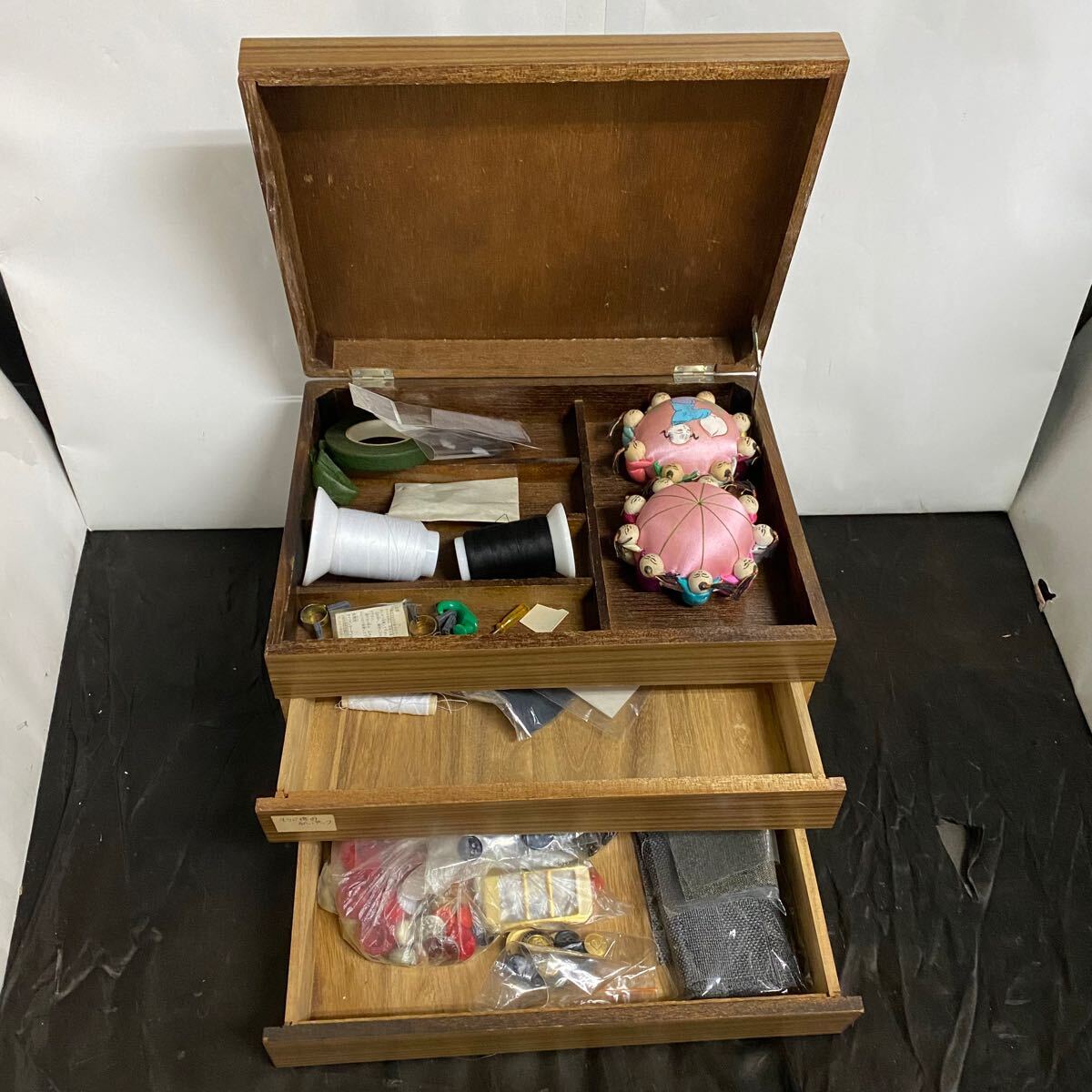 使用していたボタン、糸等の手芸用品が色々入っています。