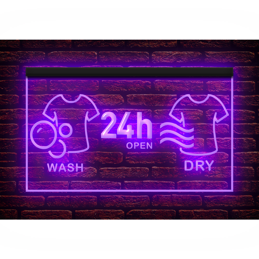 【RGB24キーリモコン仕様 16色発光タイプ】260188//LED ネオンサイン 24時間営業 コインランドリー 洗濯乾燥■サイズ(約):W550mm x H300mm