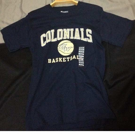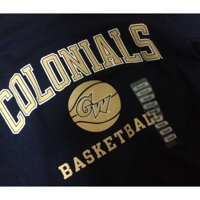 アメリカジョージワシントン大学バスケ部のTシャツ。男女兼用。未使用。サイズはアメリカS(肩幅43、脇下身丈45、袖丈20、着丈66cmくらい)。