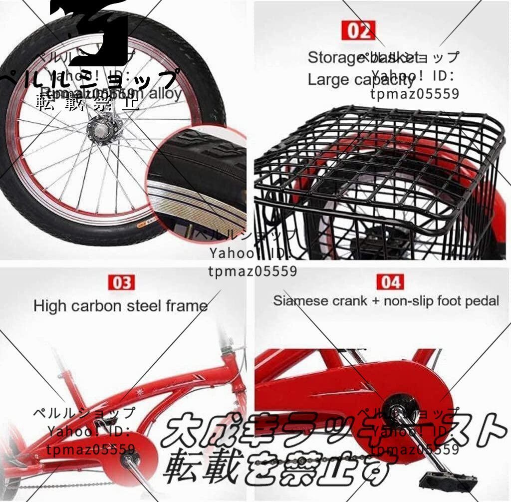 超人気 16インチ3輪車 大人用三輪車 、高齢者女性男性Rトライク三輪車、リアブレーキ大人用三輪車、買い物かご付き F779