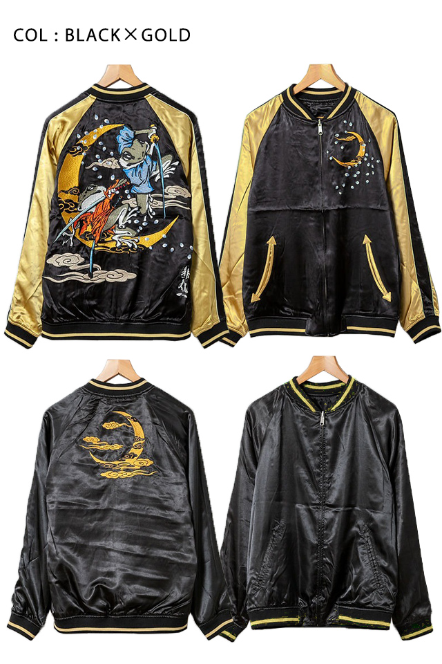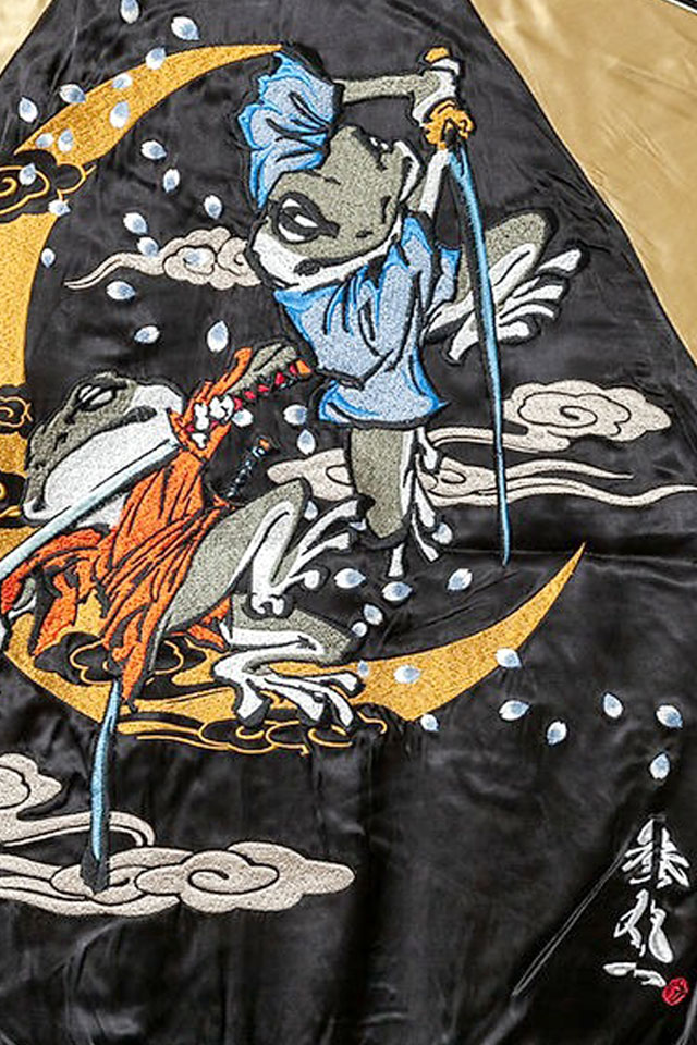 「参丸一」さんから「侍兄弟総刺繍リバーシブルスカジャン(SM-30621)」のご紹介です。 二匹一組で戦う侍兄弟。 今宵、桜吹く中二匹が舞い踊る。 侍シリーズの新作をとくとご覧あれ! 背中には、蛙の侍兄弟の姿を大胆に落とし込みました。 躍動感のあるバックスタイルは必見です! また、今回のスカジャンはリバーシブルになっています。 ボディーにはレーヨンサテンを採用。 1枚持っているだけでずっと使えるアイテムです。 | ||||||||||||||||||||