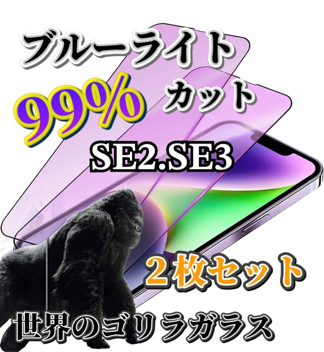2枚セット【iPhoneSE2.SE3】世界のゴリラガラス    ブルーライト99%カットガラスフィルム