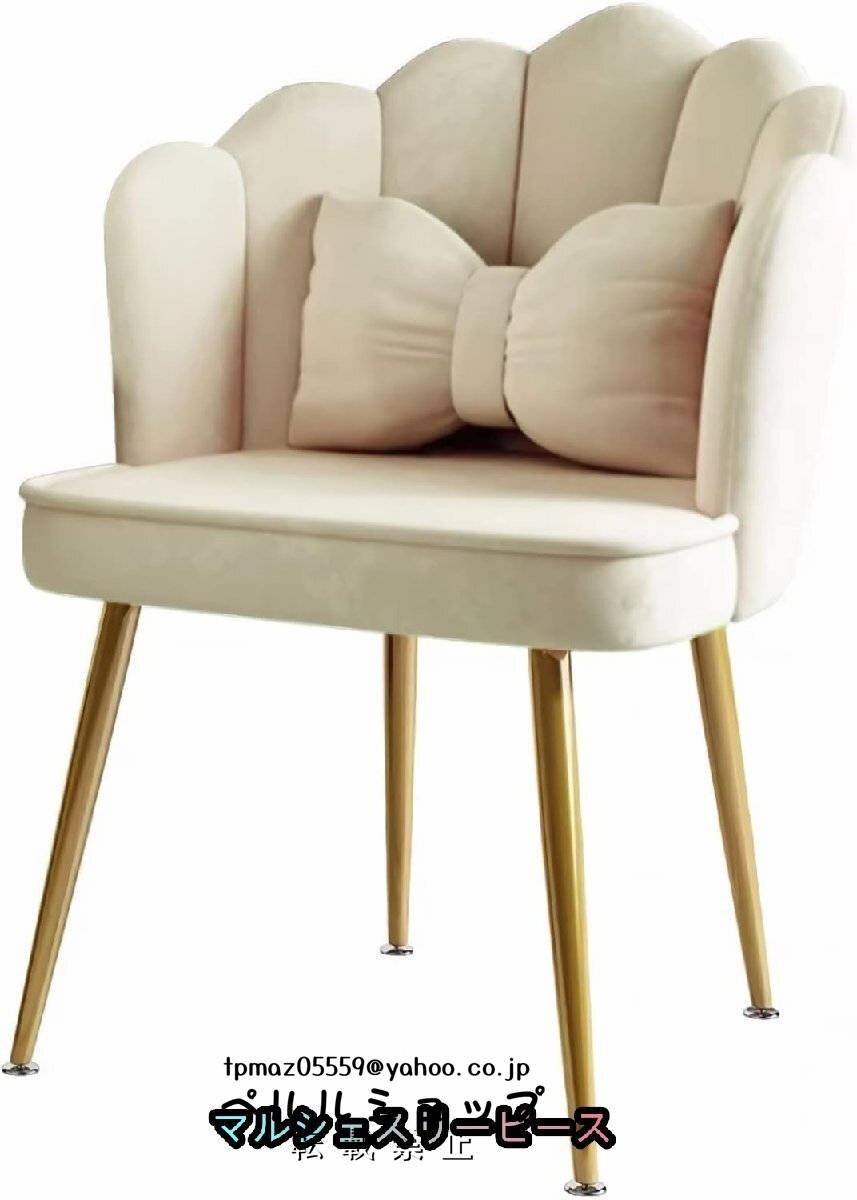 ダイニングチェア 花びら椅子 リボンクッション付き お洒落 だいにんぐチェア オフイスチェア カフェバー 組み立て簡単 (ベージュ)