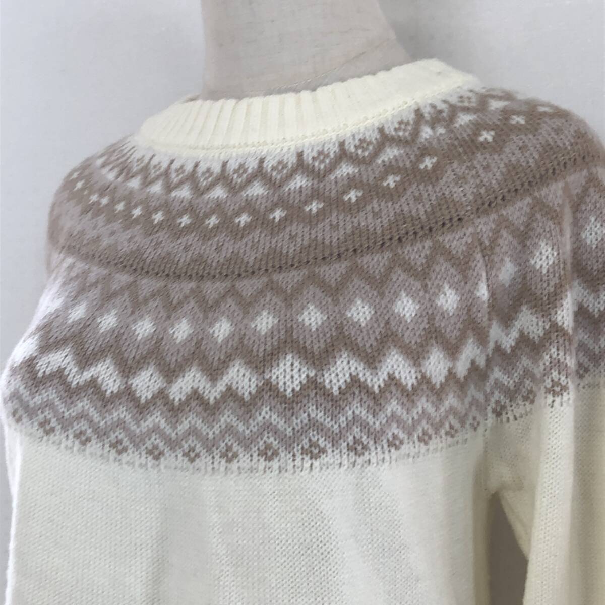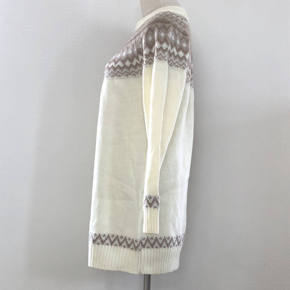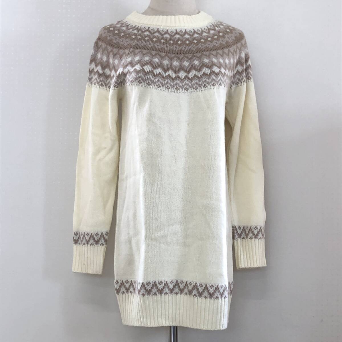 YX1620 PERSON‘S レディース トップス セーター 長袖 厚手 伸縮性 丸首 M クリーム色 シンプル カジュアル おしゃれ あたたか 秋冬