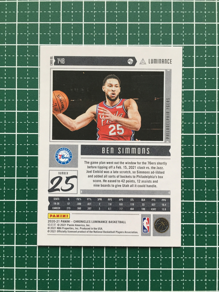 ★PANINI 2020-21 NBA CHRONICLES #148 BEN SIMMONS[PHILADELPHIA 76ERS]ベースカード「LUMINANCE」★