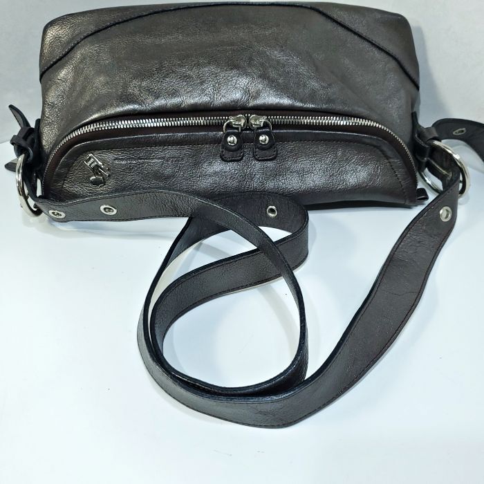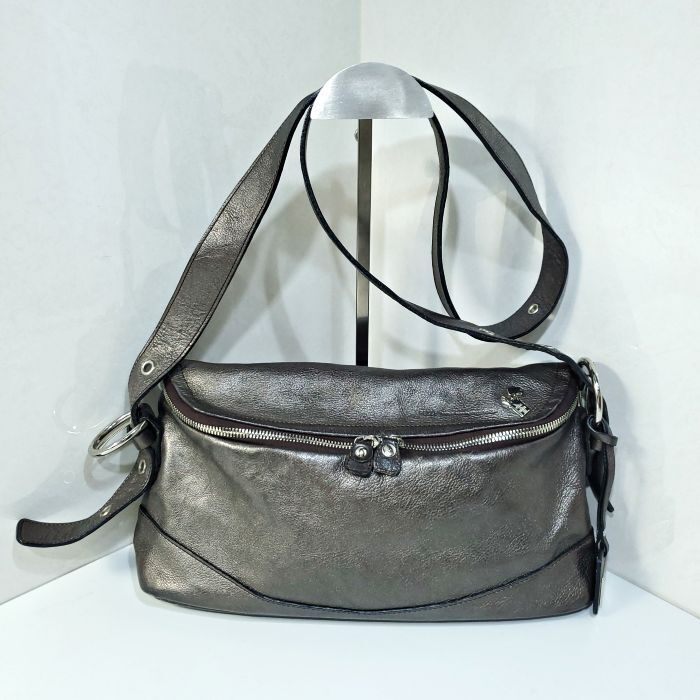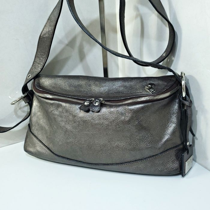 【アイテム】2way 斜め掛け 肩掛け ショルダーバッグ シボ革 シュリンクレザー ガンメタ