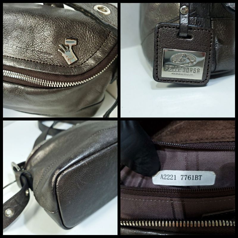 【商品名】ペレボルサ PELLE BORSA 2way 斜め掛け 肩掛け ショルダーバッグ シボ革 シュリンクレザー ガンメタ 1280372e20250113