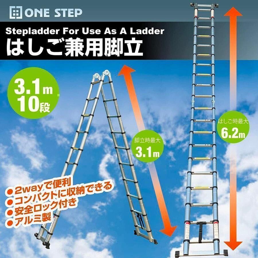 ■2営業日内スピード発送(日祝日は発送お休み) ■初期不良には誠意を持って対応いたします! ??沖縄、北海道への発送は追加料金がかかりますので ご購入前にコメントお願い致します。 はしご 伸縮 6.2M 150kg 家庭用 業務用 6M 梯子 ハシゴ 災害 防災 ■仕様 最長:はしご時6.2m 脚立時3.1m+3.1m 脚立時階段数:10段+10段 カラー:シルバー 商品の重量:20kg 素材:アルミ合金 耐荷重:150kg 【段差高さ調節可能】 伸縮自在で使用時には1段ずつの引き伸ばし可能!安全ロック付き、用途に合わせて必要な高さに調整可能。日本語説明書付き。 【用途】 様々のシーンで大活躍。はしご兼用脚立1台2役。用途に合わせて自由自在に使用できます。工場内、室内の掃除、室外の庭関係、家の壁掃除、窓ふき、屋根の掃除、玄関の電球交換等、冬の雪おろし作業、車洗時の洗車足場等。持ち運びも簡単で女性の方も使用可能!! 【使用素材】 アルミ合金製で軽量。アルミ製のパイプとダブルロックの設計、滑り止め付き。脚先は凸凹の構造と円錐型の形状で滑りにくい。また、追加の保護パッド付きのため安全性を向上。1段ずつ引き伸ばし、必要な高さでロック出来ます。 *29-2450