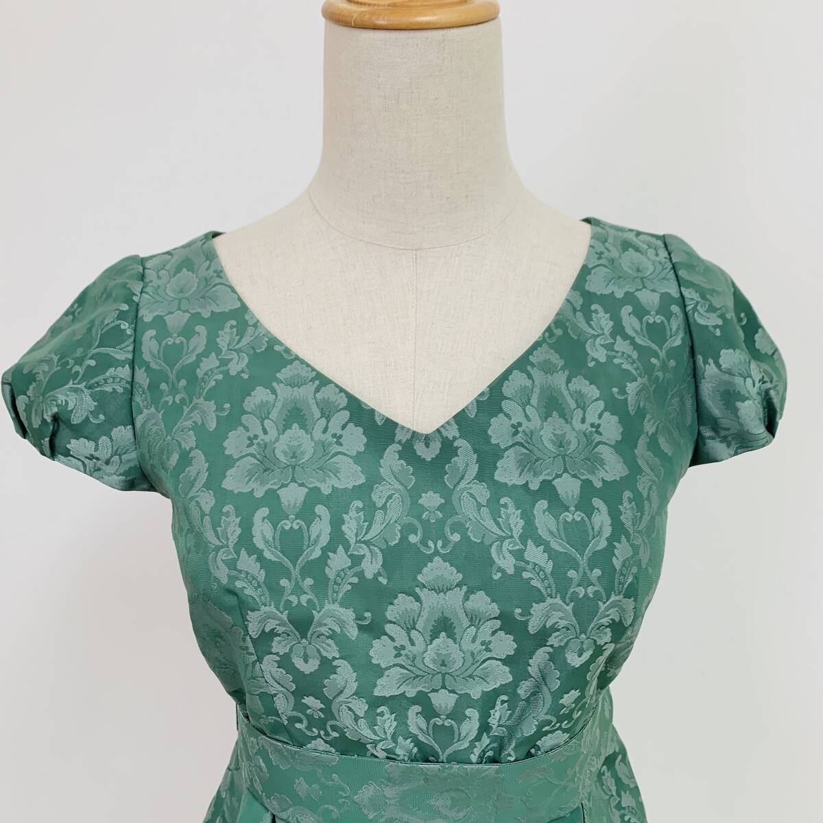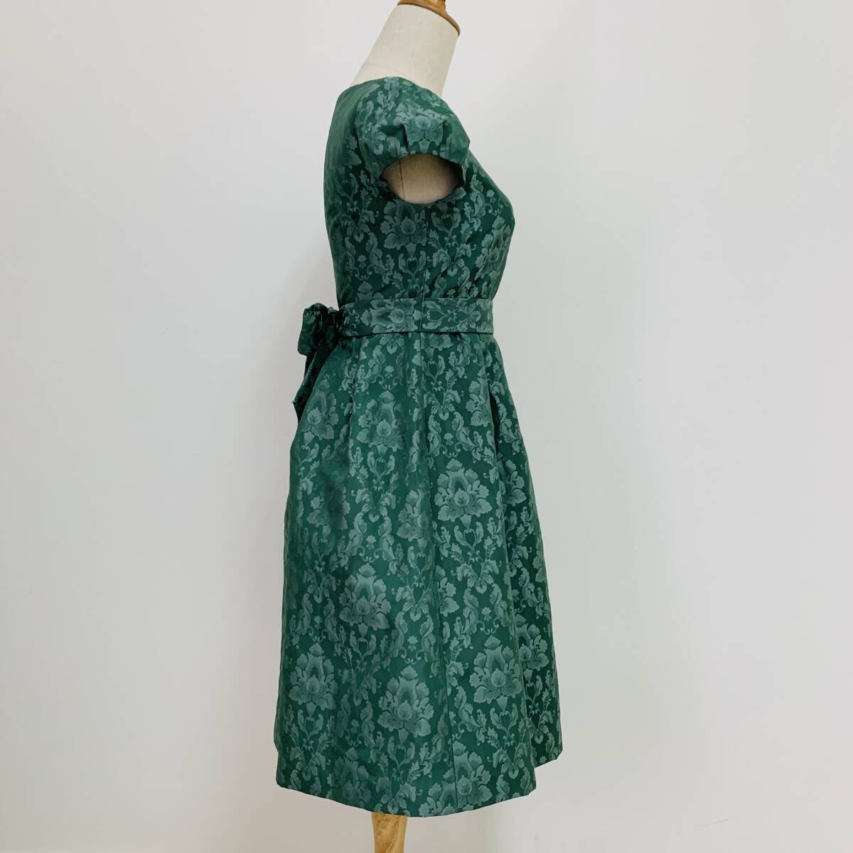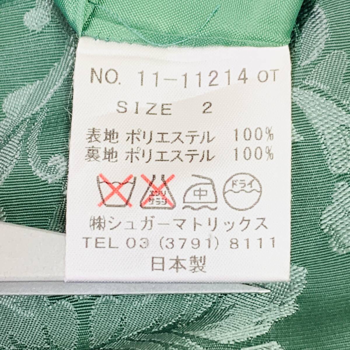 YH2362 美品 STRAWBERRY-FIELDS レディース 日本製 総花柄 半袖 ワンピース ドレス グリーン 緑 2サイズ 膝丈 裏地 万能 USED 古着