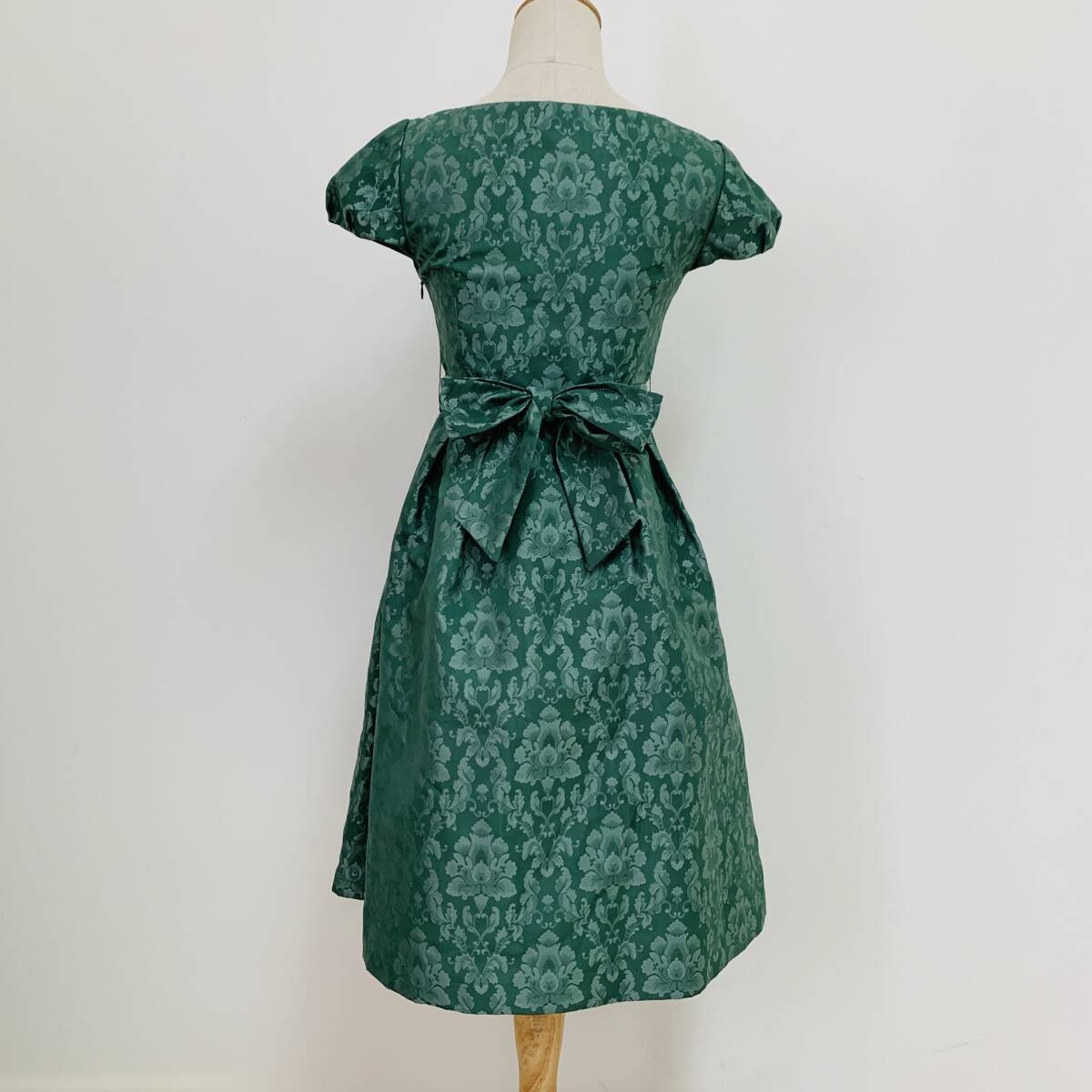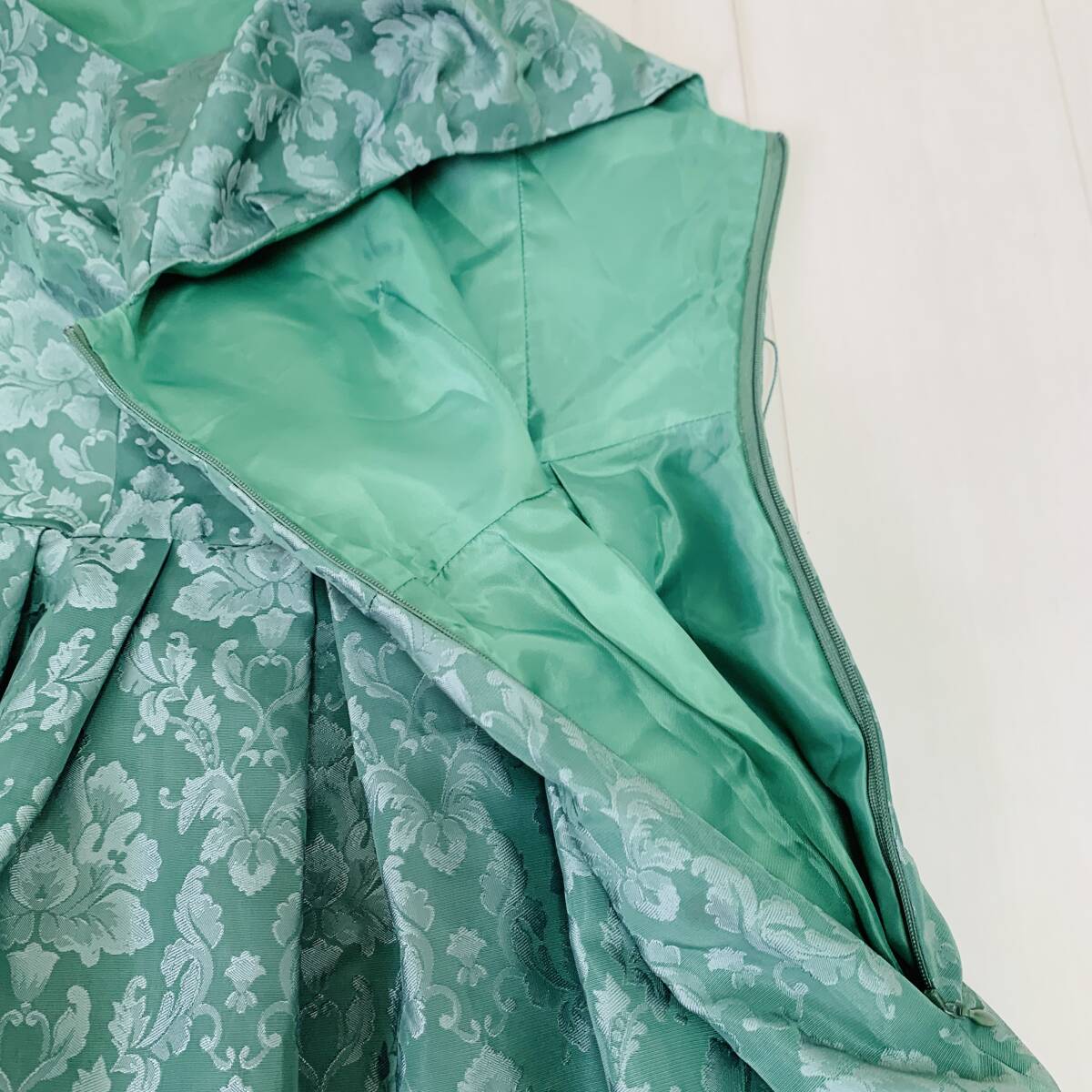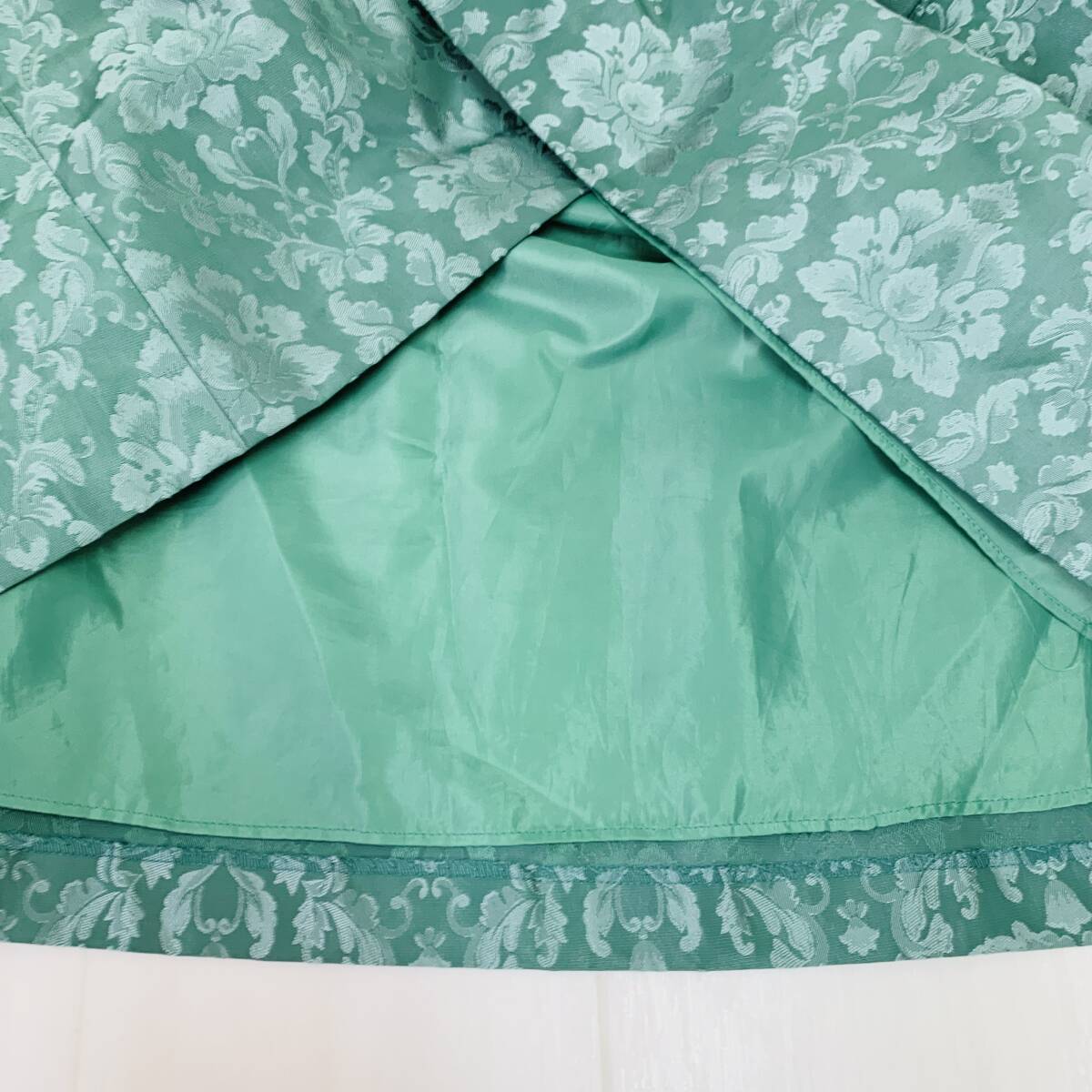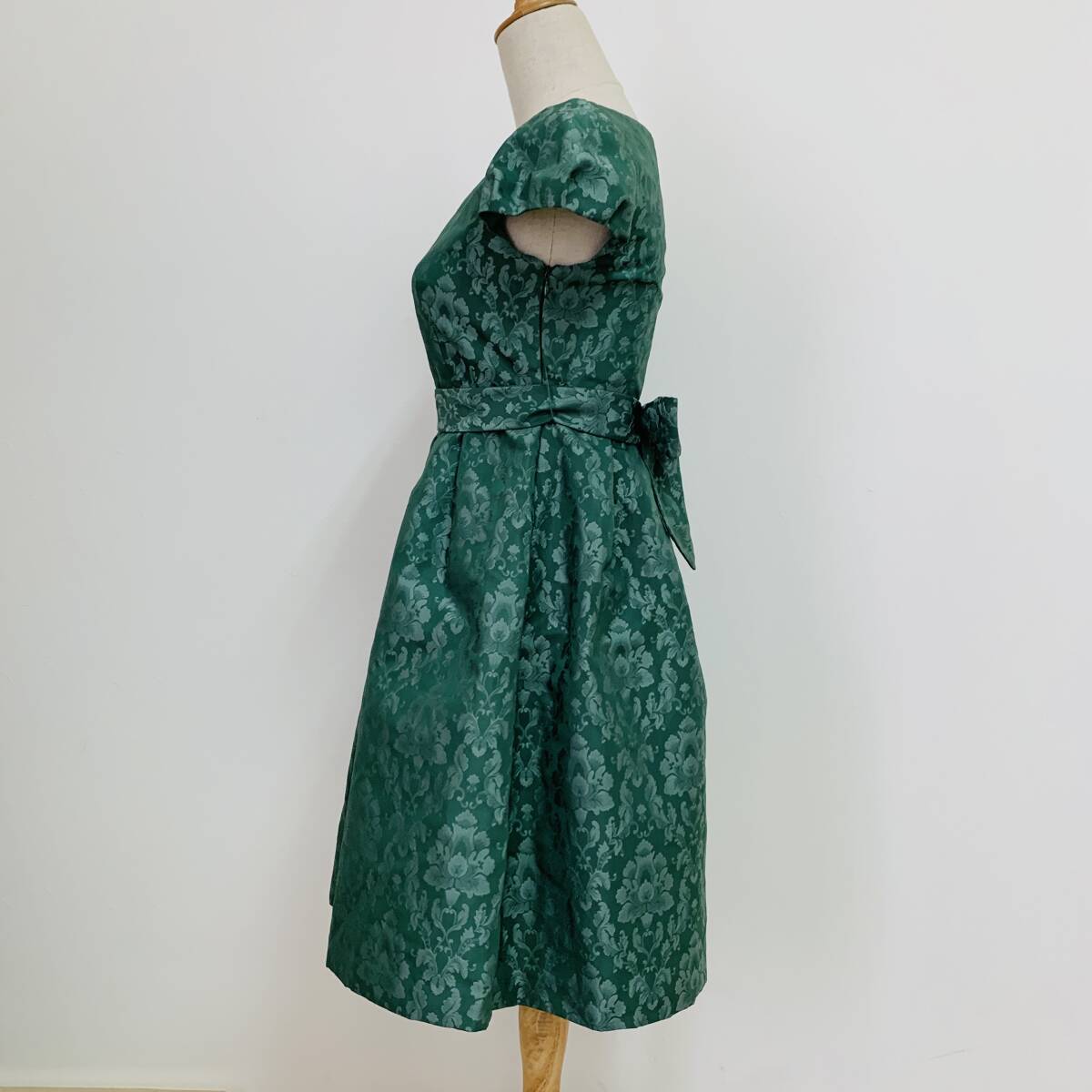 YH2362 美品 STRAWBERRY-FIELDS レディース 日本製 総花柄 半袖 ワンピース ドレス グリーン 緑 2サイズ 膝丈 裏地 万能 USED 古着