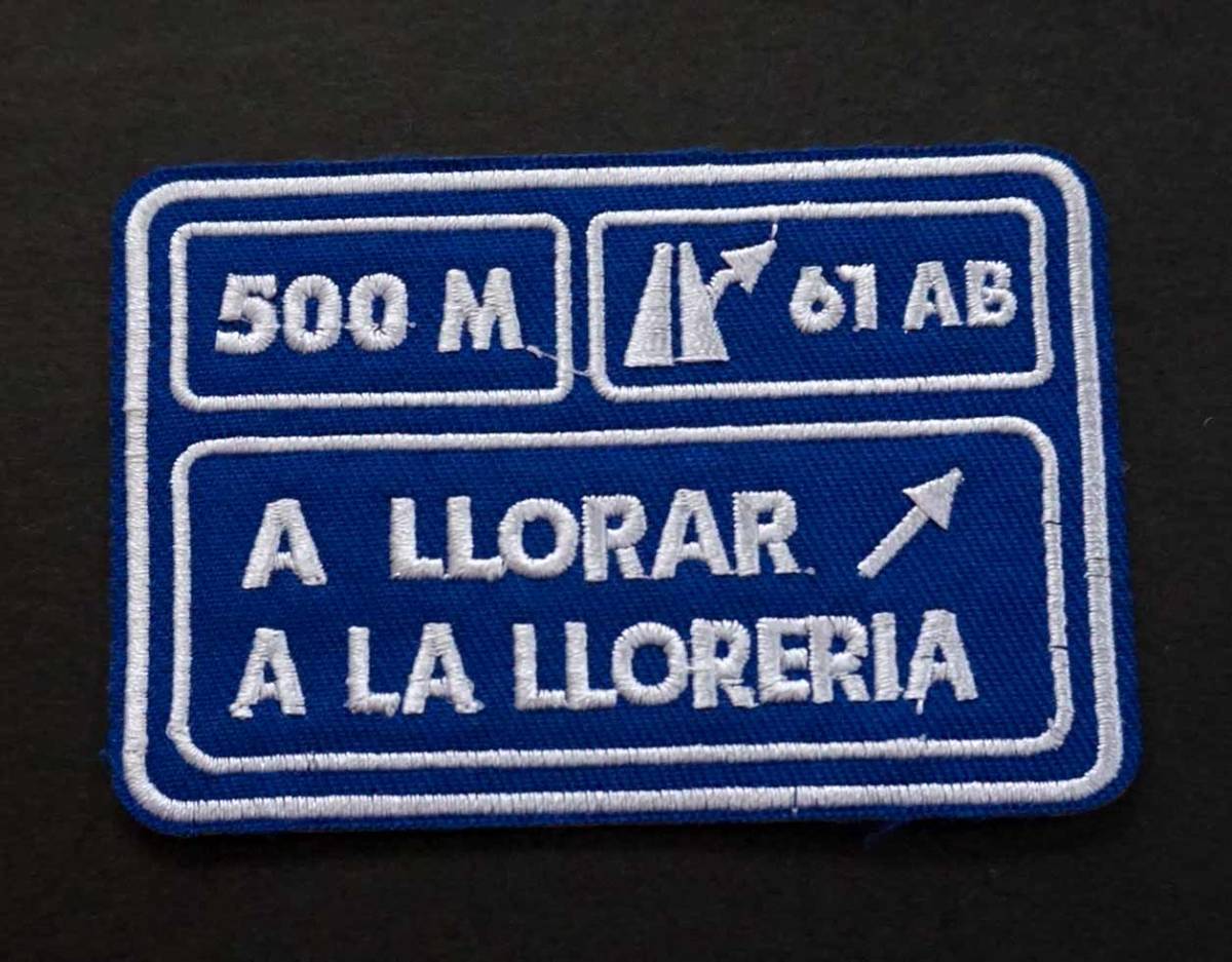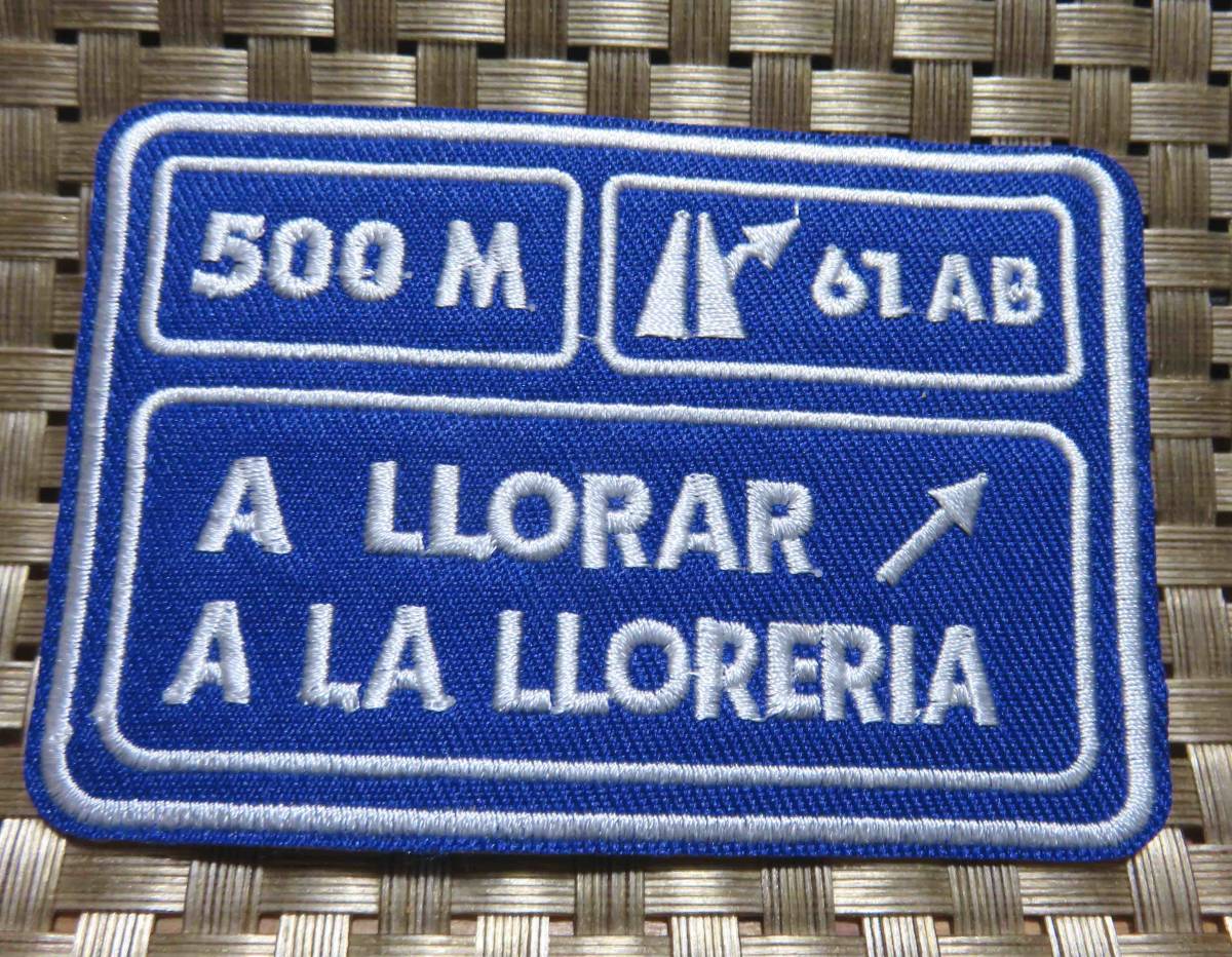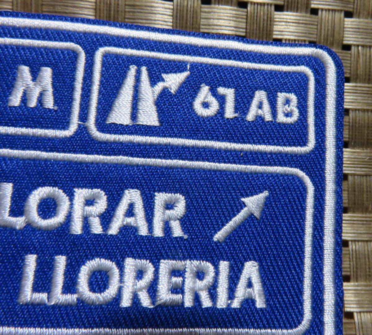 青白 道路標識◆新品A Llorar a la lloreria  フランス フランス語 road sign 刺繍ワッペン◆自動車 オートバイ バイク レース
