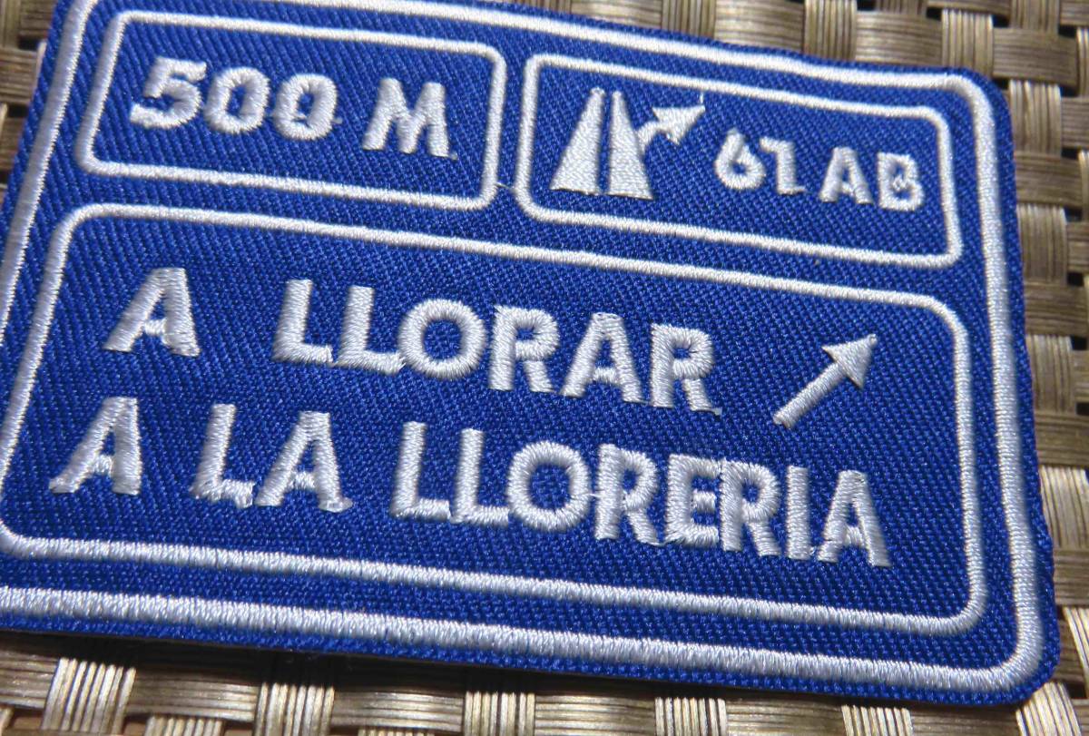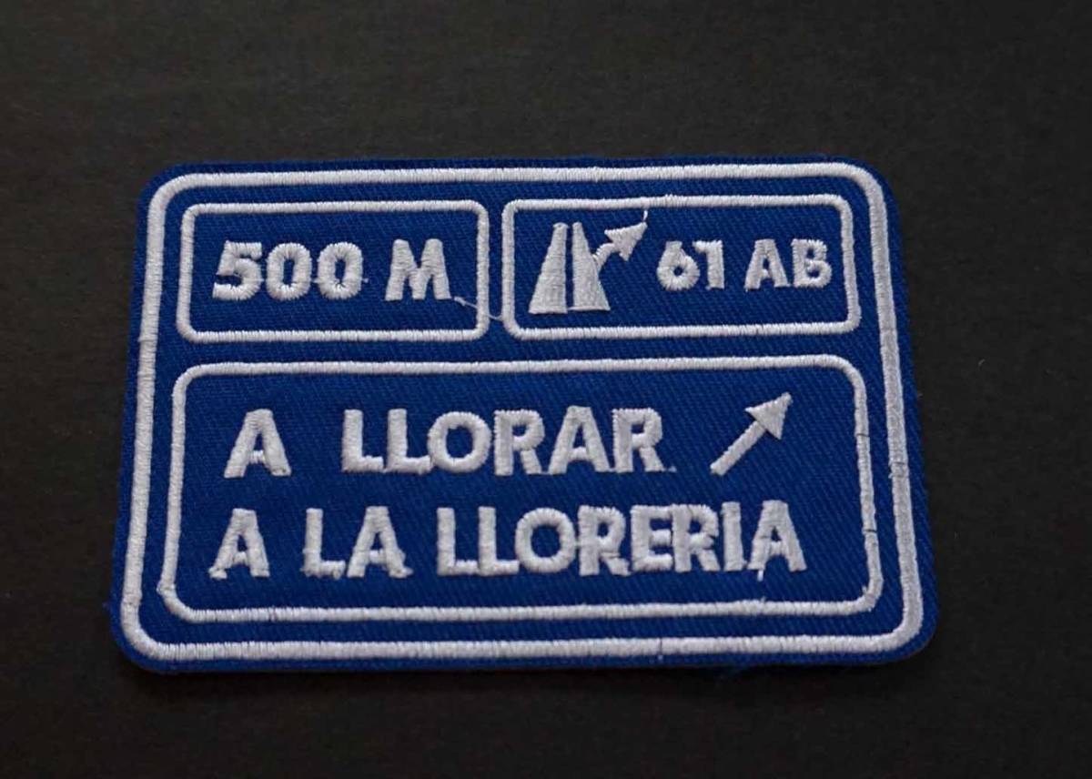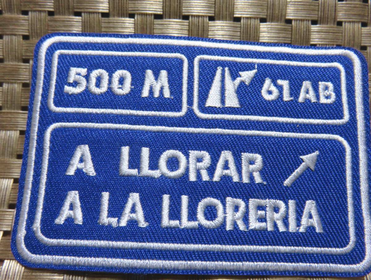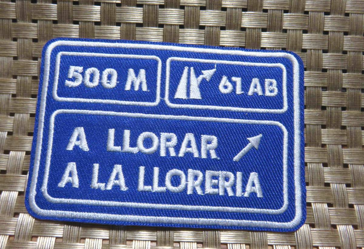 青白 道路標識◆新品A Llorar a la lloreria  フランス フランス語 road sign 刺繍ワッペン◆自動車 オートバイ バイク レース