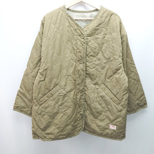 ◇ Java ジャヴァ キルティング フロントボタン オーバーサイズ 長袖 ジャケット ブルゾン サイズL カーキ レディース E