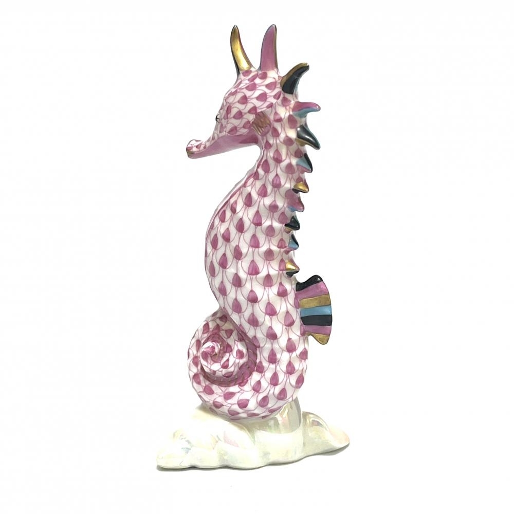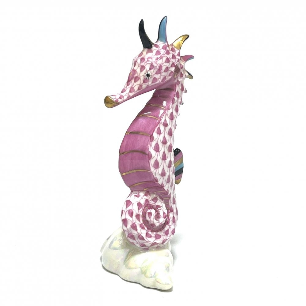 | 商品詳細 | タツノオトシゴモチーフの陶器のオブジェです。ツノの部分、前から3本目に割れを接着した修復跡がございます。土台裏のシールは劣化していてはがれません。 |