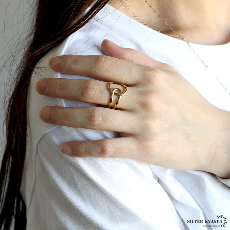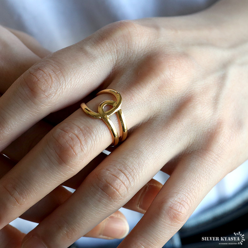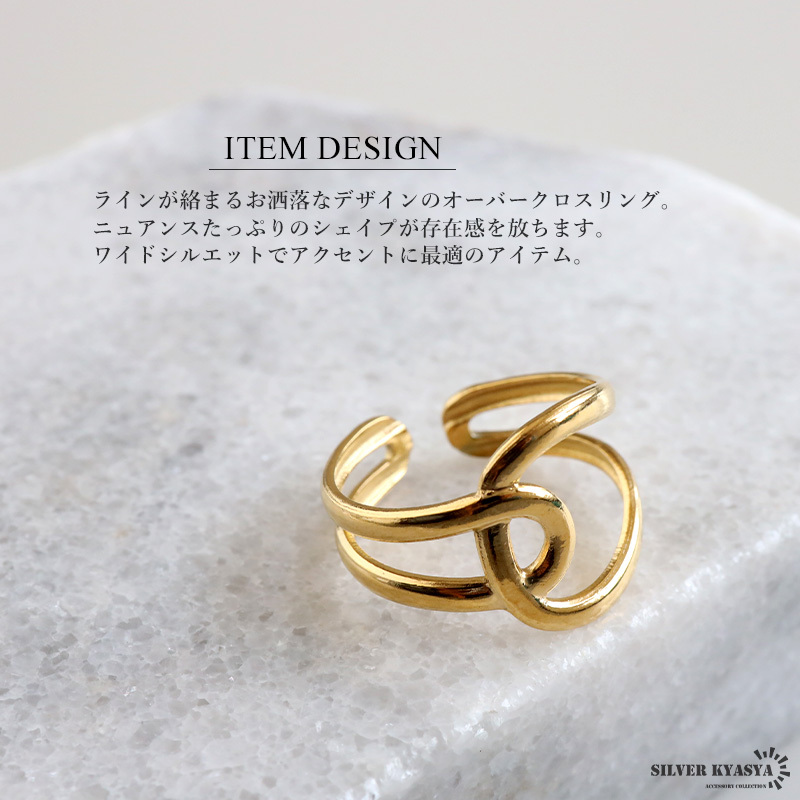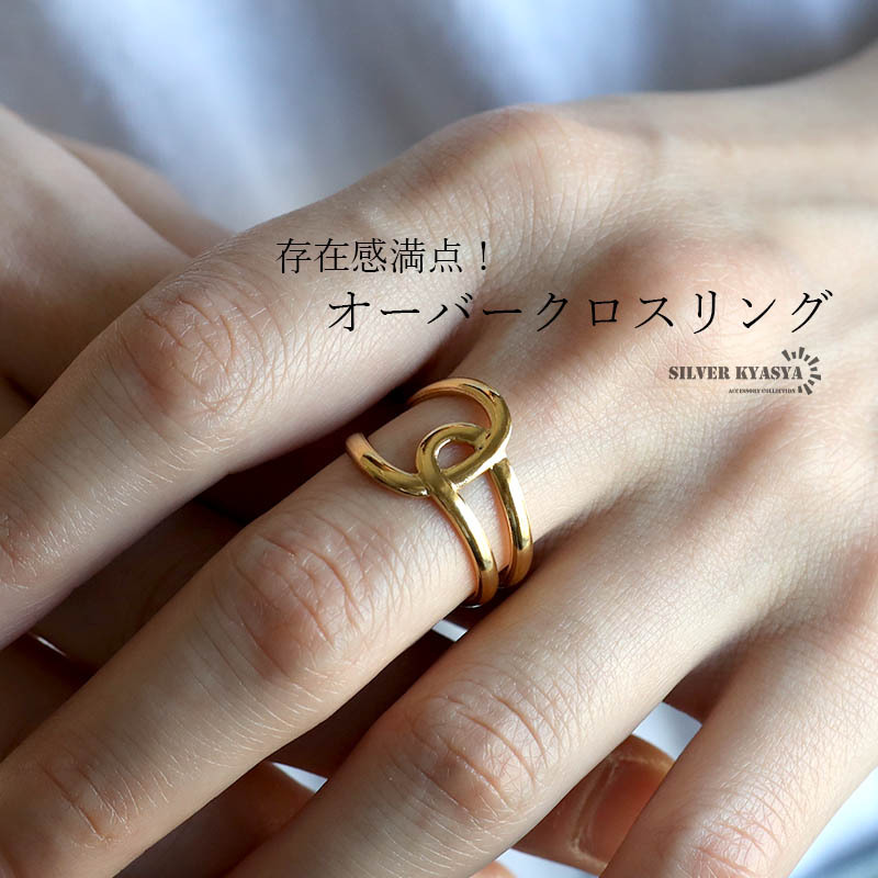オーバークロスリング ニュアンスリング ゴールドリング 指輪 18KGP ゴールド ステンレス レディース 金属アレルギー対応