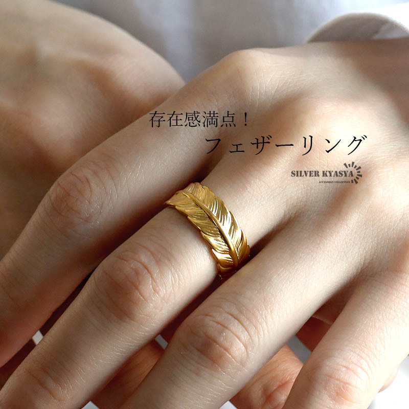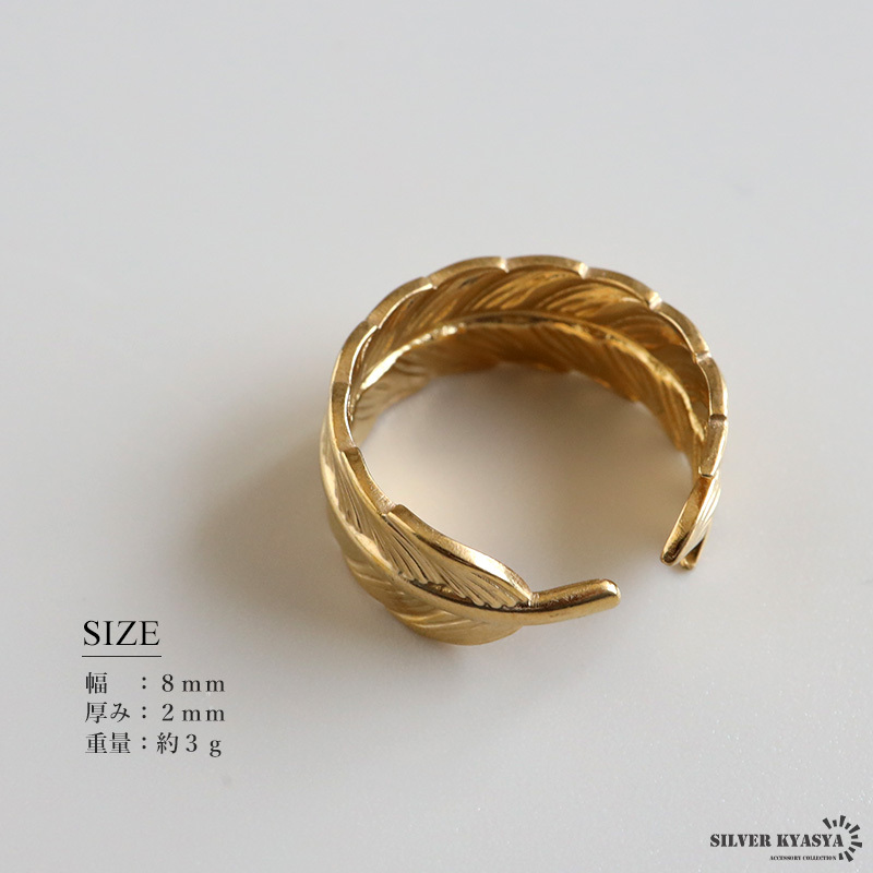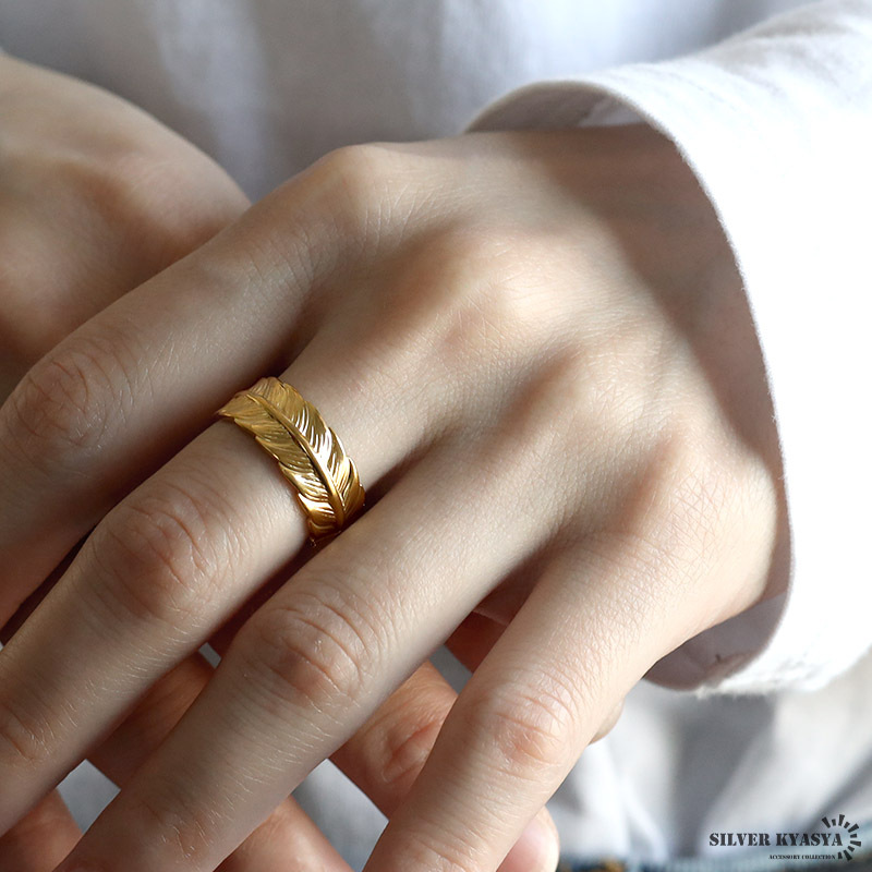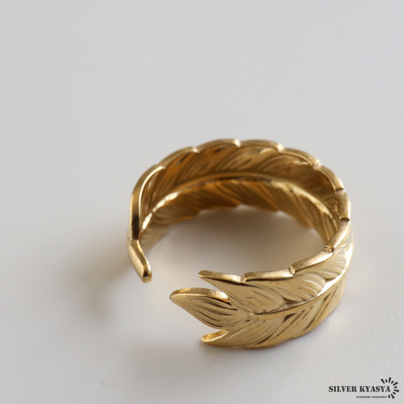 フェザーリング イーグル ゴールドリング 指輪 18KGP ゴールド ステンレス 羽根 レディース フリーサイズ 金属アレルギー対応