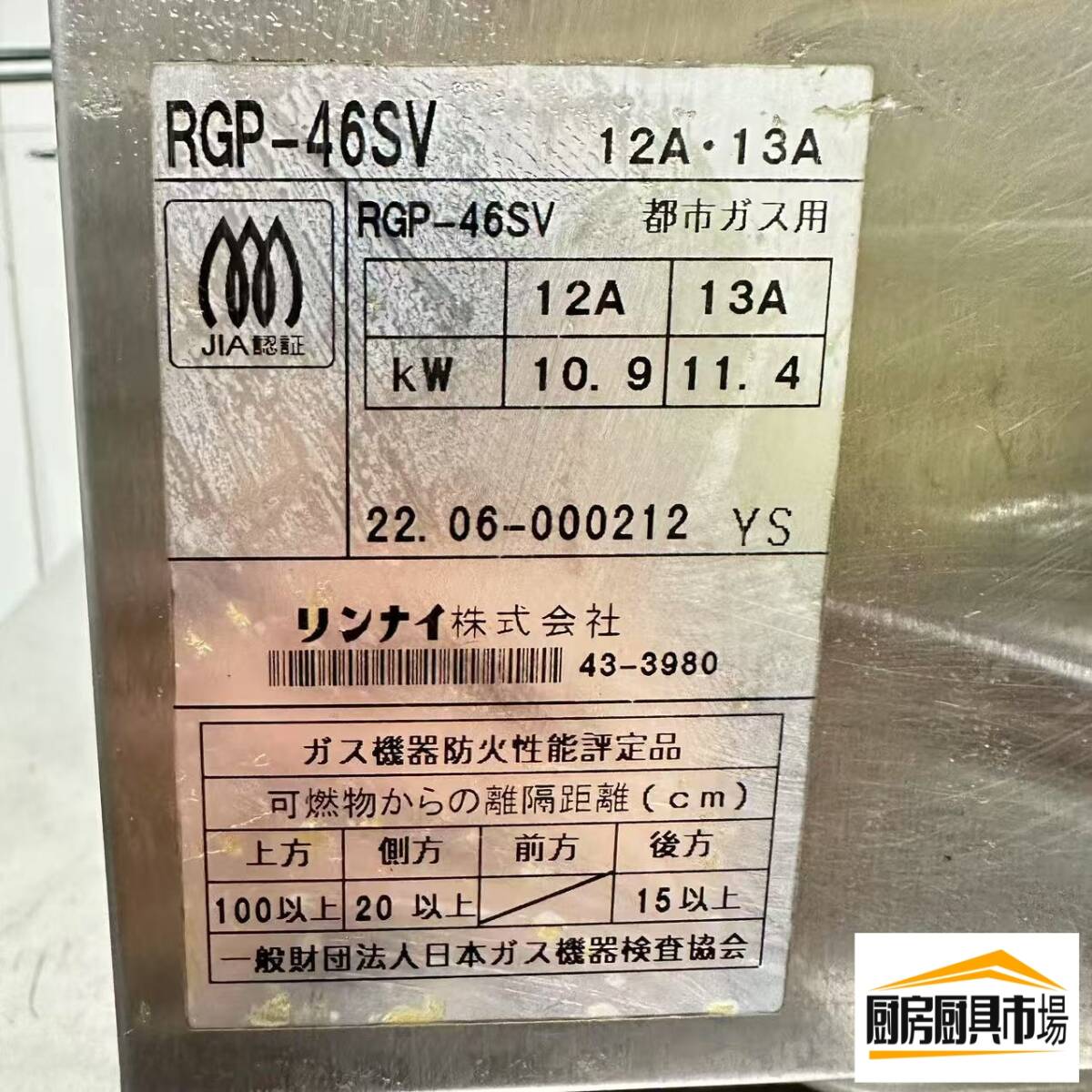 商品名 | 【中古品】番号479◆上火式焼物器 RGP-46SV 2022年 都市ガス 動作問題なし☆ |