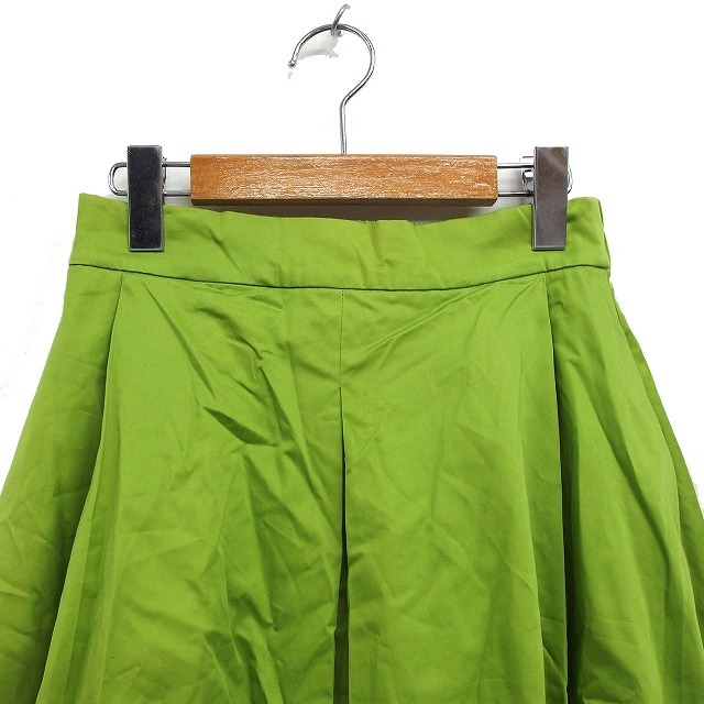アウィーエフ AuieF タック フレアスカート ひざ丈 無地 コットン 綿 ライムグリーン 緑 /FT23 レディース