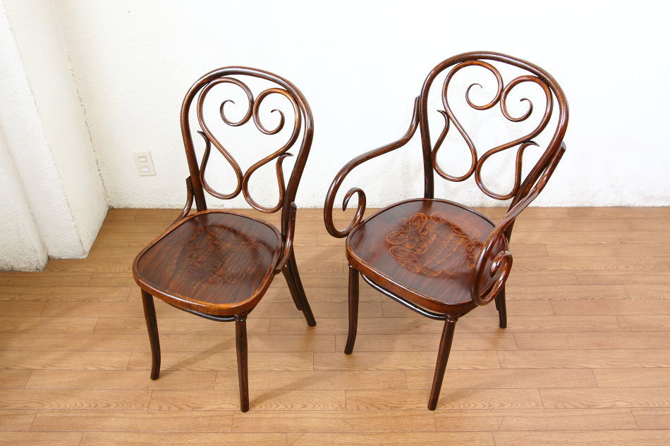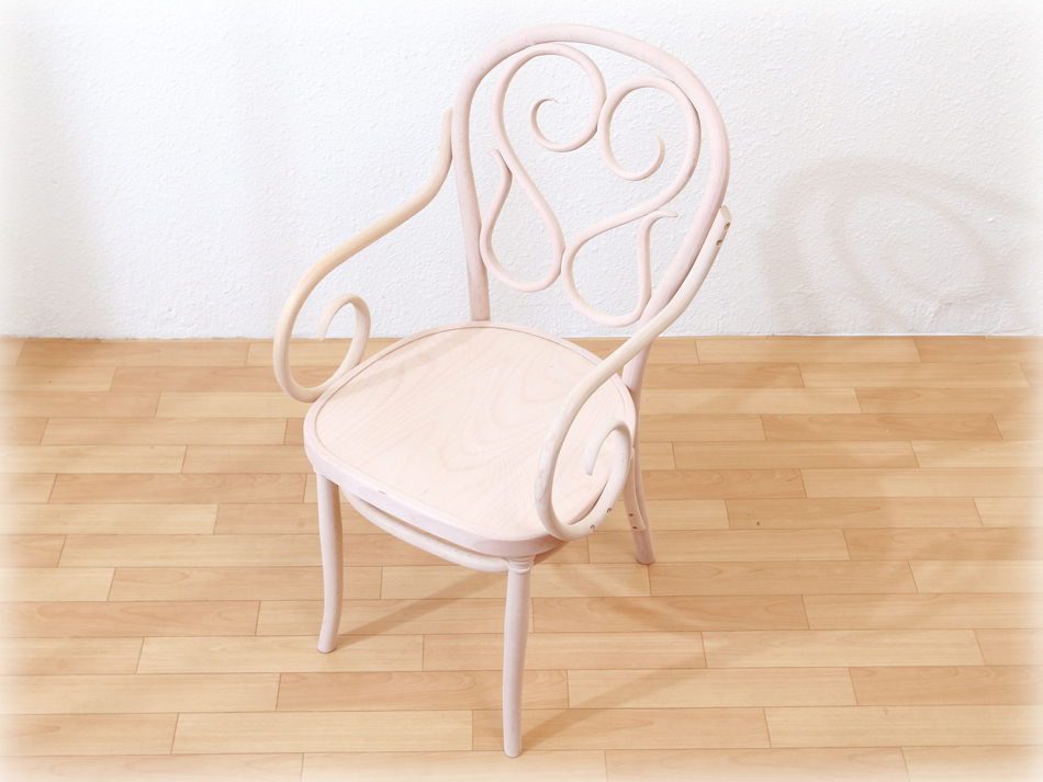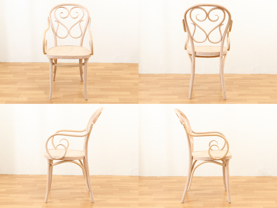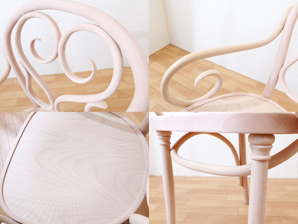 ポーランドより直輸入しました「世界の名作椅子」”No4 ダウムDAUMチェア(アームレスト付き)”です。 通称“カフェダウムの椅子”と呼ばれている”ミヒャエル・トーネットMichael Thonet”(1796-1871)の代表作。 1849年、オーストリアのTHONET社にてデザインされました。 現在でも現役で作られている「新品のアンティークチェア」ですが、No4 ダウムDAUMチェアは生産数が少なく、 アンティークはもちろん、現代家具でもほとんど見ることの出来ない大変希少なベントウッドチェアになります。 製造メーカーの ”ページドPaged”社は、旧 ”ゲブルダートーネットGebruder Thonet” 社(オーストリア)の ポーランド工場を継承した、150年の歴史を持つ名門企業です。 Pagedの”No4 ダウムDAUMチェア”については本物のアンティーク・ベントウッドチェアと同等のクオリティ。 一生お付き合いいただける100年品質です。 こちらの出品チェアのカラーは、未塗装品の ”ピュア・マテリアル” 。 ご愛用いただければいただくほどに味わいの増す仕様です。 ( ”ピュア・マテリアル” はアンティーク塗装+10,000円up+税などへの色替えも可能です。) ※ヤフオクではこちらのシステム上、塗装などのオーダーをお受けすることができませんので、 必要な場合には下記デニム・アネックスのHPよりお申し込みください。 座面のエンボス柄はアンティークの時代から受け継がれてきた”ジャパニーズ・サン”。 日本人にはうれしい古くからのヨーロッパ伝統仕様です。 複数在庫がありますので、店舗家具としてもご検討いただけます。 贈り物にも、ぜひ。 ※在庫は現在20脚ほどございます。(在庫は日々変動します。ご購入は1脚単位です) リアルタイムの在庫数や商品情報の詳細は → “こちら” をご参照ください。 |