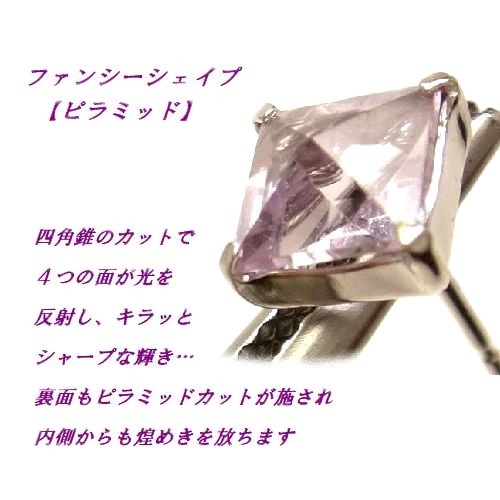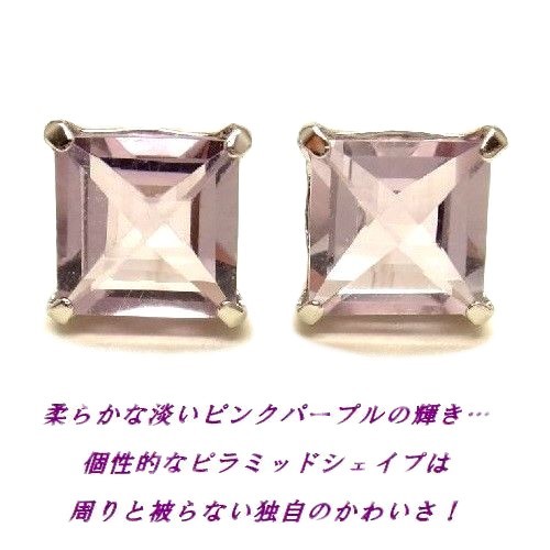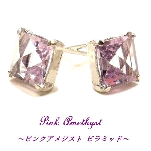 K18 ピンクアメジスト 両面ピラミッドカット 5mm スクエア スタッドピアス WG YG ゴールド 2月誕生石 天然石 レアカット 箱付き