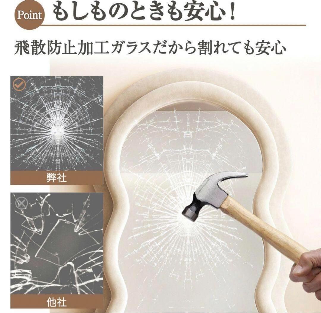 ◆ご閲覧ありがとうございます! 万が一初期不良の場合は対応させていただきます。 ◆北海道、沖縄、離島への配送は別途郵送料がかかります。対象の方はコメント欄にコメントをお願いします。 ◆商品説明 ◎カラー:ホワイト ●ベルベット製フレーム フレームが高品質のベルベット製で、この種のベルベット生地は柔らかく滑らかで鮮やか。純粋なカラーが表現されていることが特徴です。 ●安心安全な飛散防止加工 もしもの時も安心!飛散防止加工が施されたガラスを採用しております。 ●安定性にも優れた立てかけミラー 底部は平らなデザインなので。床に置いて安定してお使いいただけます。 ●4mm厚で割れにくい高品質ガラスミラー 4mmの高品質ガラスミラーは、明るくて色彩の再現性に優れています。室内を明るく美しく演出するだけでなく、肌の色や顔色を正確に映し出すことが出来ます。 〇詳細 ・サイズ 160cm × 60cm ・重さ 約12.9㎏ 立てかけミラー 姿見鏡 全身鏡 ビロード鏡 ベルベット生地フレーム 波の形 大型 おしゃれ 160cmx60cm 鏡 飛散防止加工