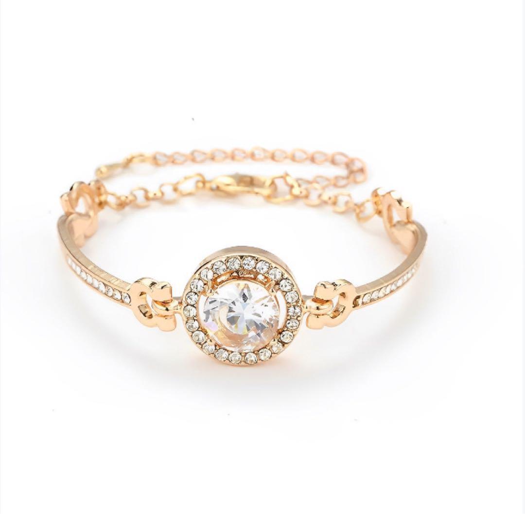 中央に大きめのストーンが輝き、小さめのストーンもライン状についているので、手首を華やかに見せてくれます。