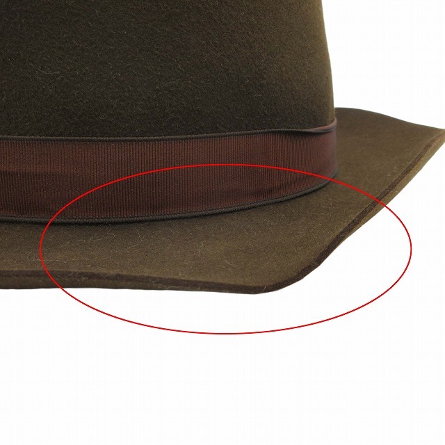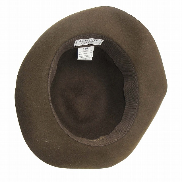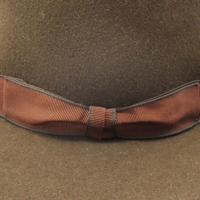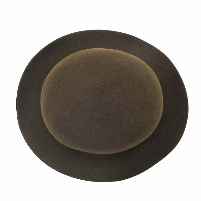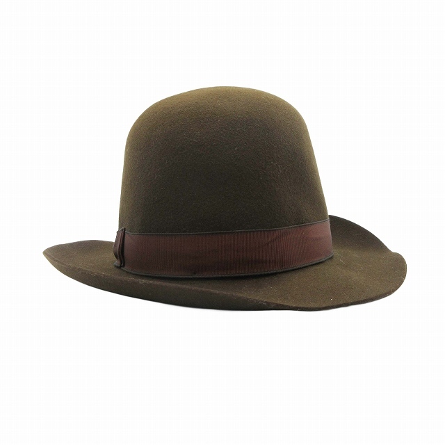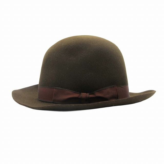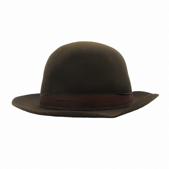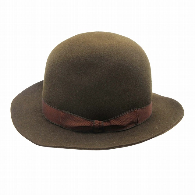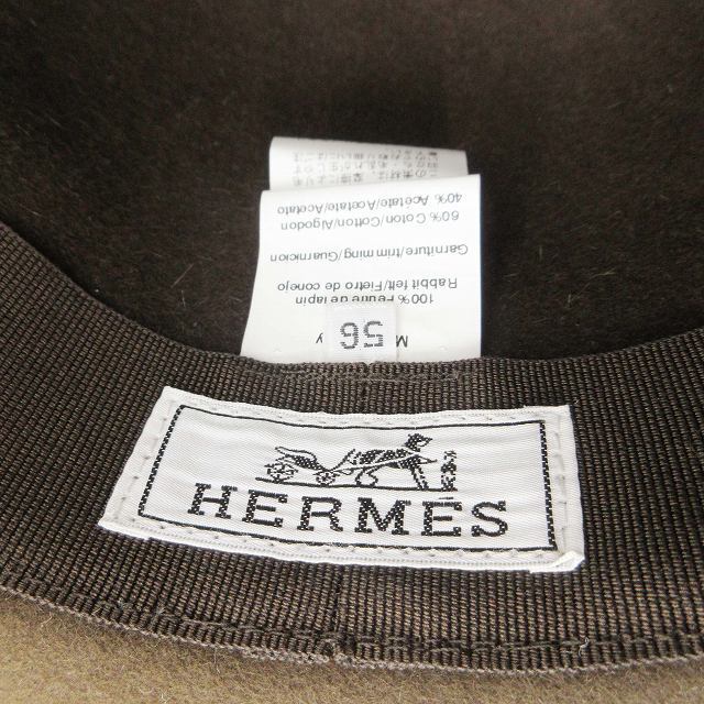 美品 エルメス HERMES ラビット100% フェルト オープンクラウン ドームハット ラウンド グログランテープ リボン 帽子 56 茶 ブラウン
