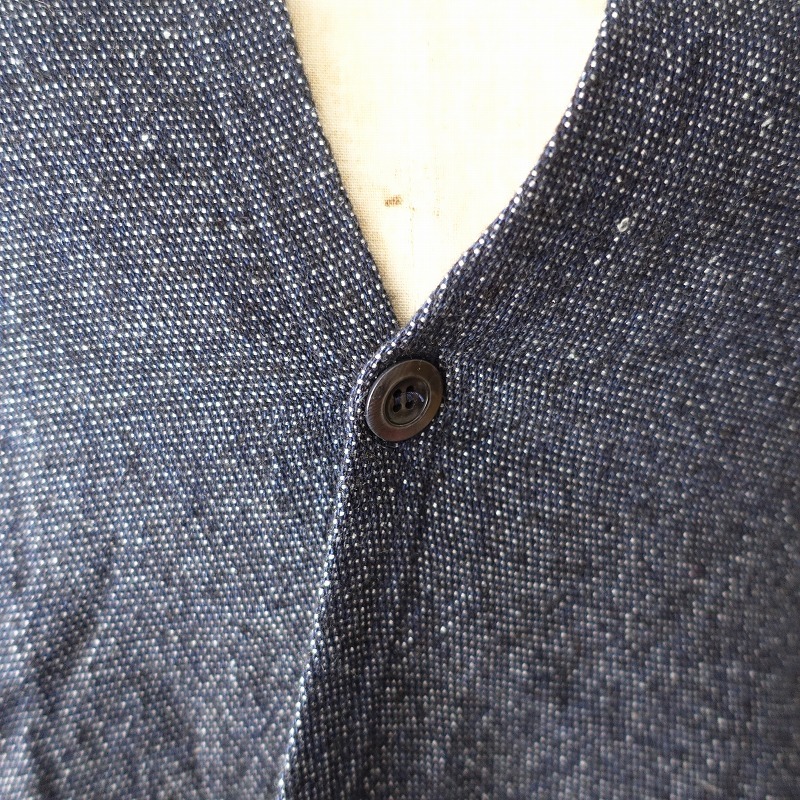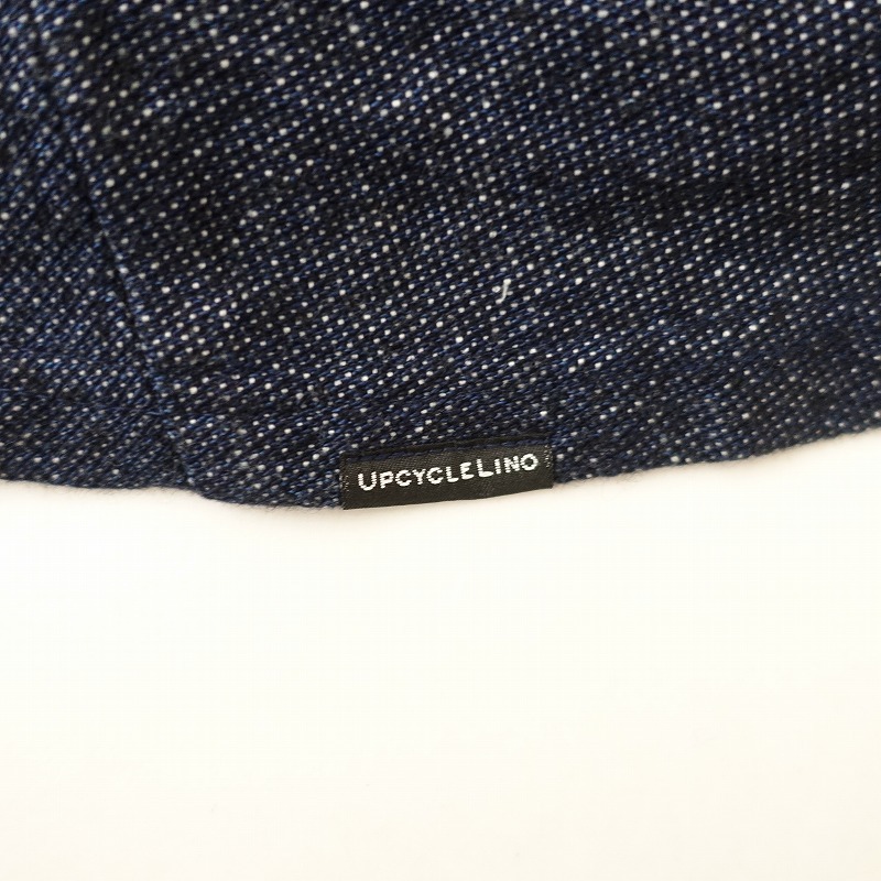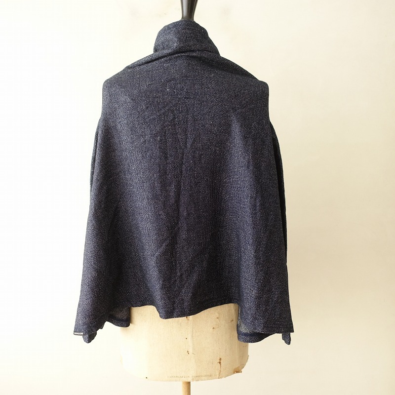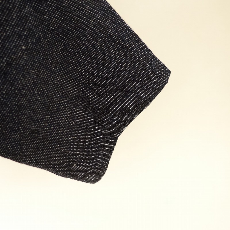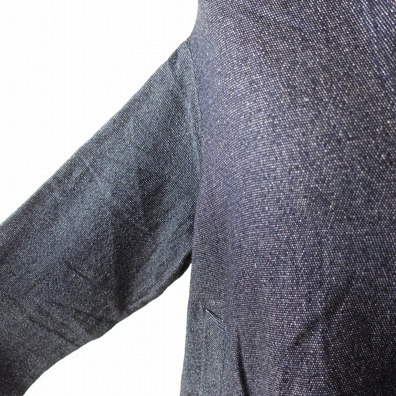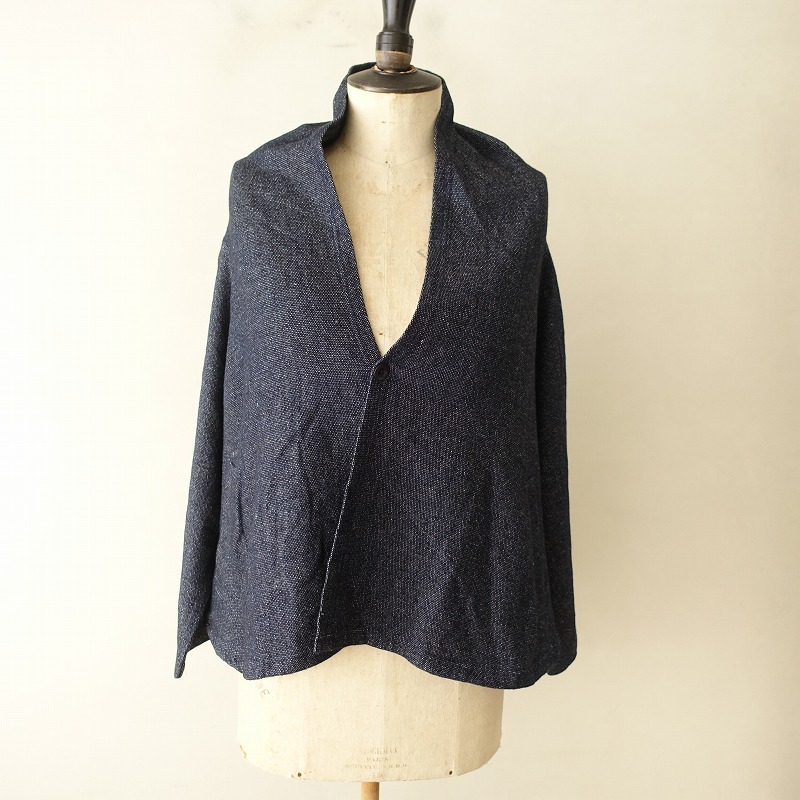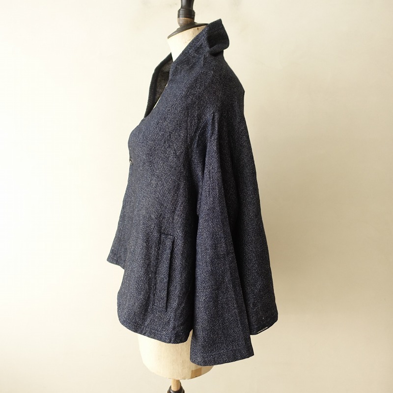 2022年コレクション nest Robe UpcycleLinoのウール混デニムショートローブです。カラーはネイビー×ホワイトのミックス(ブランド表記カラーはインディゴブルー)で、微起毛素材です。フロントボタン一つ留めで着用でき、前腰左右にポケットがあり、裏地は付いておりません。定価(メーカー希望小売価格)24,200円の商品です。 |