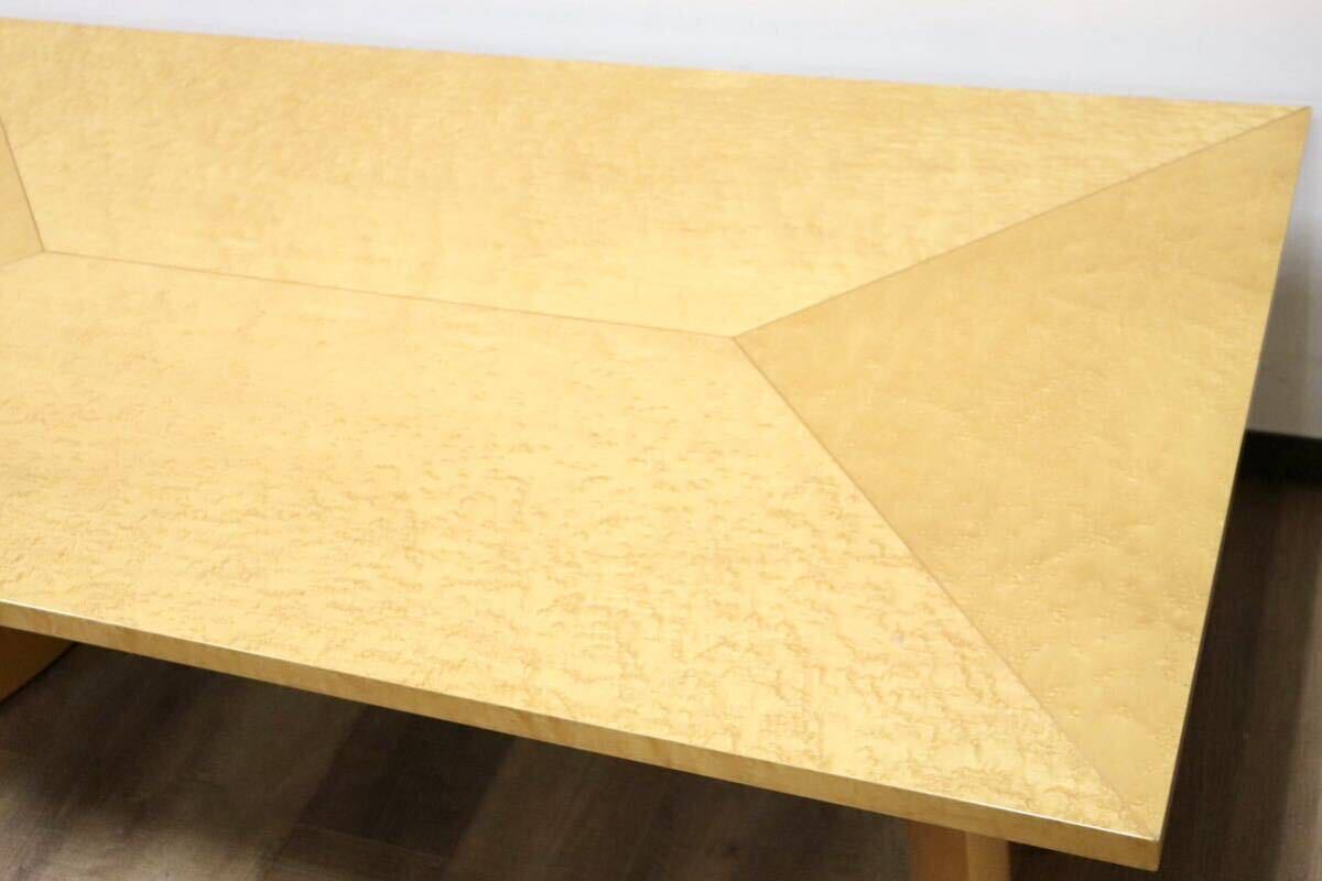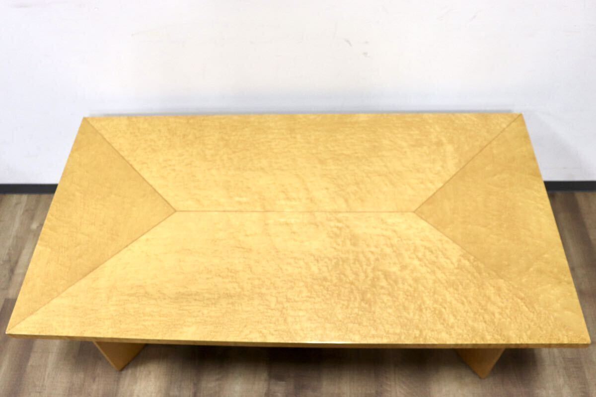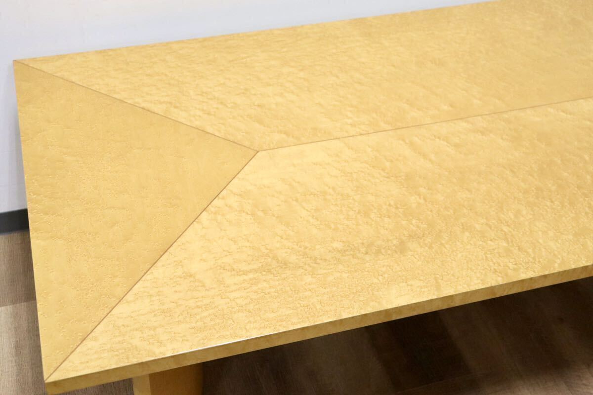 バーズアイメープルはハードメープルの中にごく稀に発生するもので、表面近くの1/5のみでしかとれない大変貴重な材で、丸い玉のような模様が連なったり、渦巻状になって現われる杢目で、鳥の目に似た模様が集まっているところから“鳥目杢”(とりめもく)と呼ばれています。神秘的な木目と衝撃に強く割れにくい性質から高級家具や高級車の内装材として使用されています。