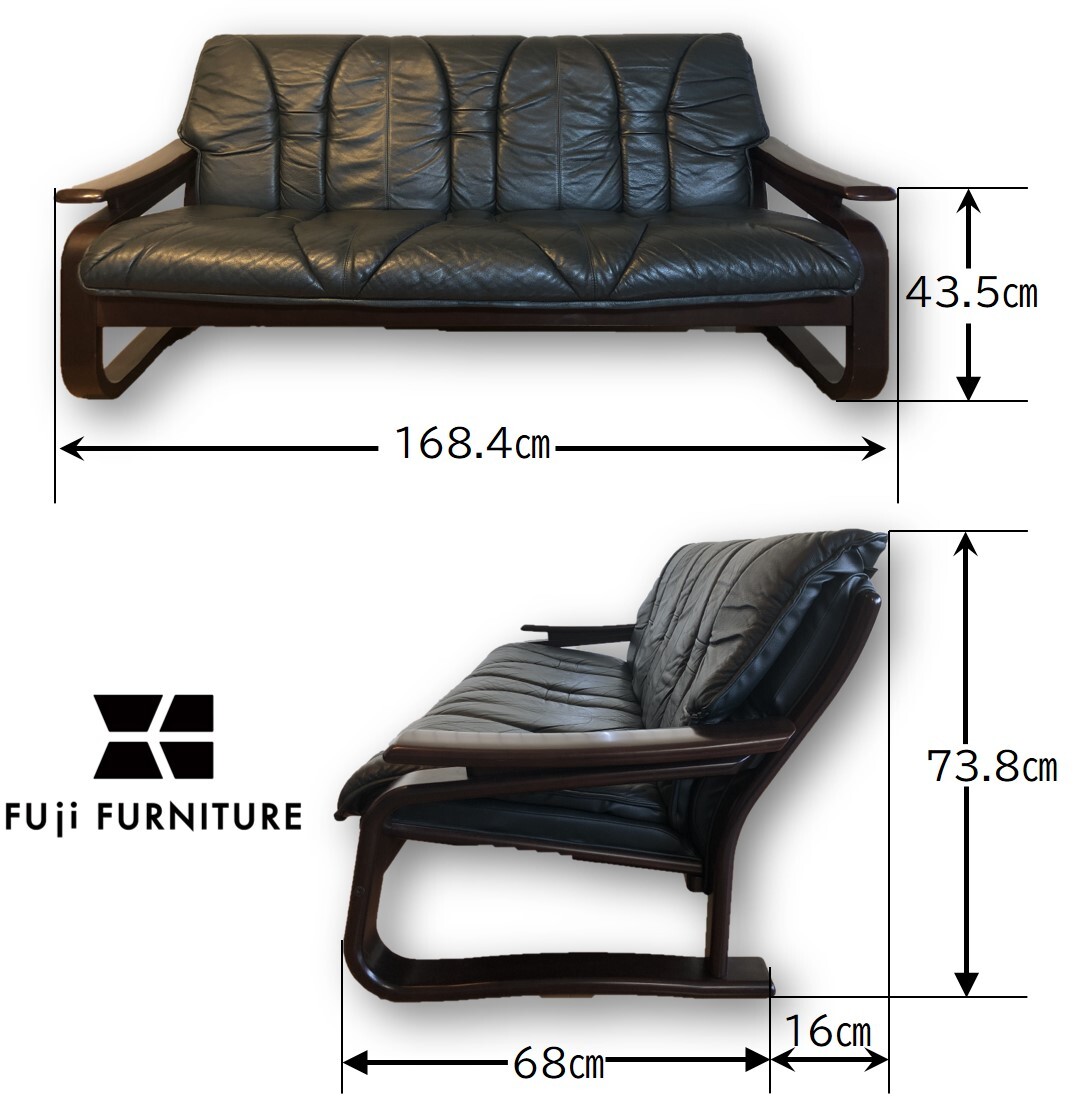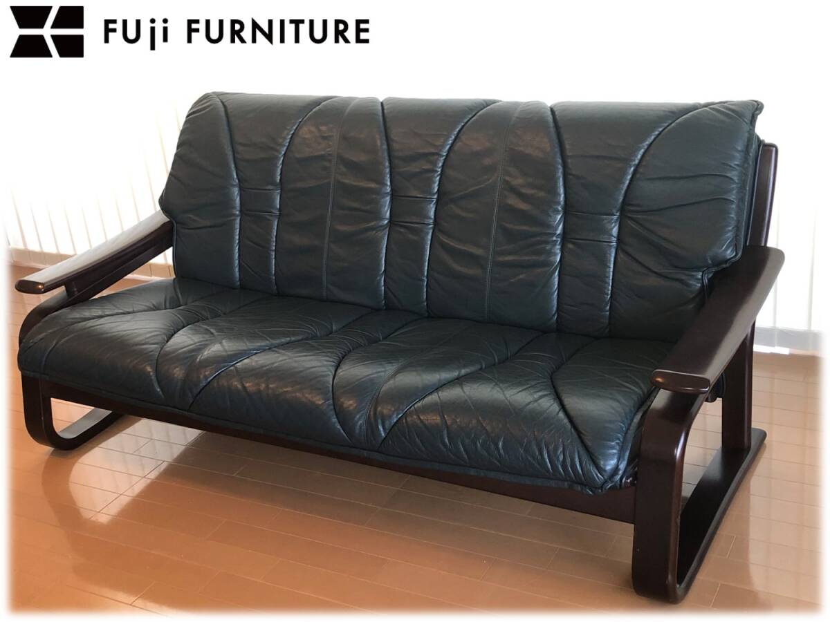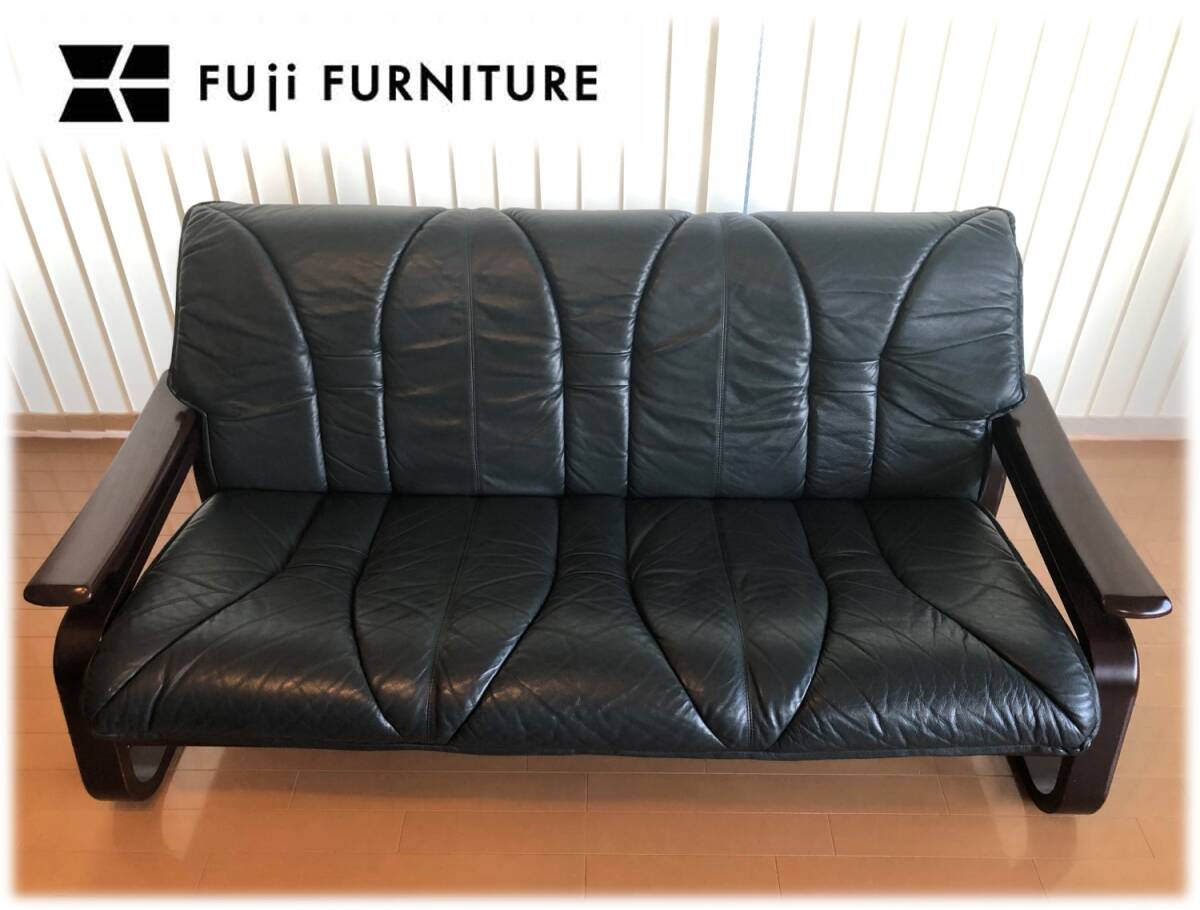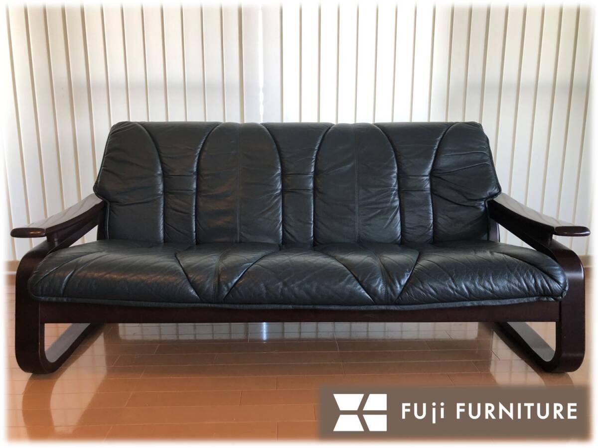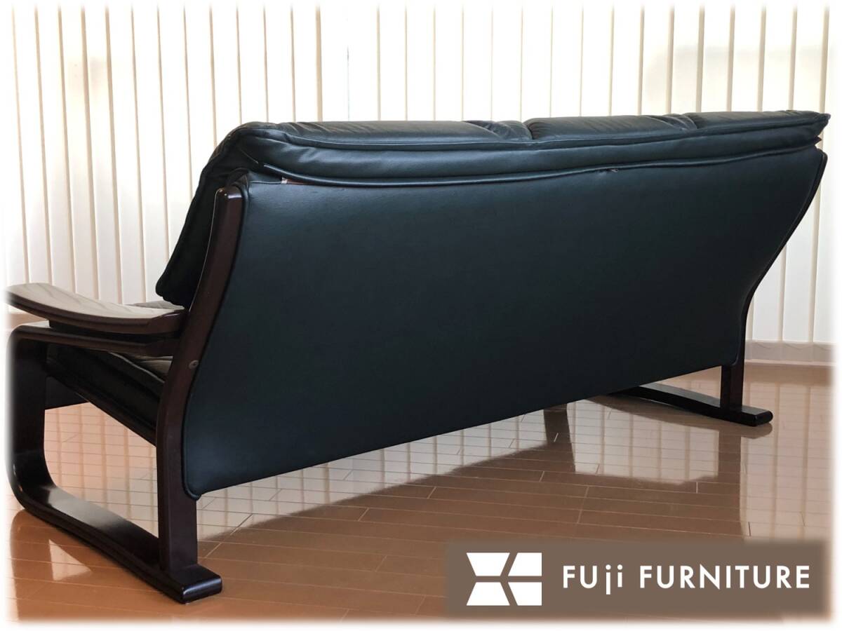 冨士ファニチア★本革張り成形合板トリプルソファー★レザー★フジファニチア★フジファニチャー北欧スタイル | |||