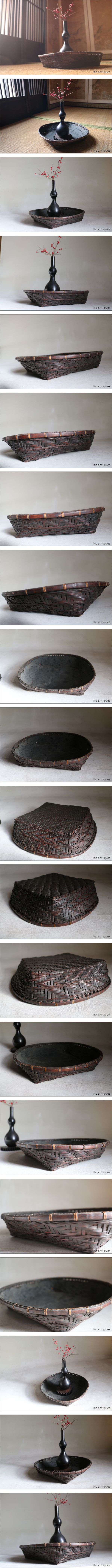 | 商品説明 | 古い竹製の籠、炭斗です。 時代は明治の物です。 煤味が付き良い趣の古民藝らしいお品です。 材は、竹製で内側には紙が貼ってあり少し破れございます。 底の四つ角スレ少し切れございますが全体的に良い状態です。 軽く汚れを落とした仕上げです。 味の良い炭斗、炭をのせるのは勿論、ディスプレイのトレイとしても良いと思います。